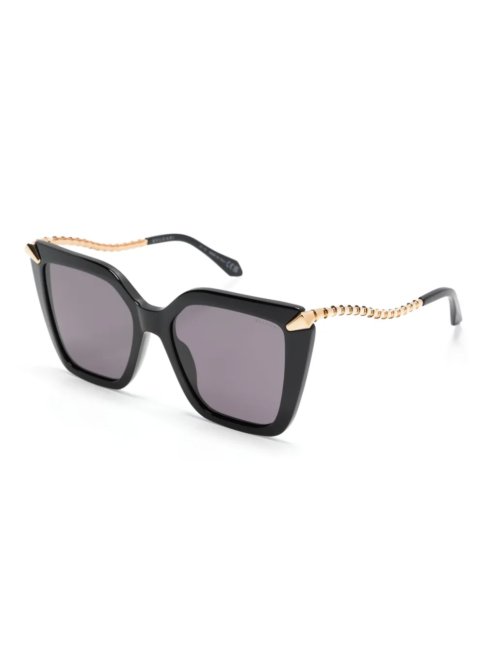 zwart acetaat vlindermontuur grijze glazen armen met slangenhuid-effect gebogen uiteinden goudkleurige hardware Deze bril wordt verkocht met een beschermhoes.