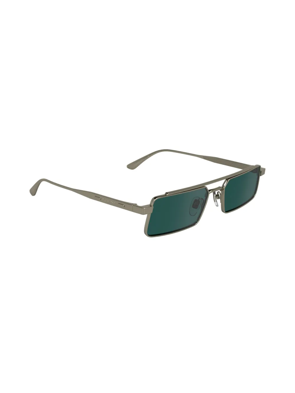 goudkleurig metaal rechthoekig montuur verhoogde neusbrug gekleurde glazen glazen met UV-bescherming neuskussentjes pootjes met gegraveerd logo rechte pootjes gebogen uiteinden Deze bril wordt verkocht met een beschermhoes.
