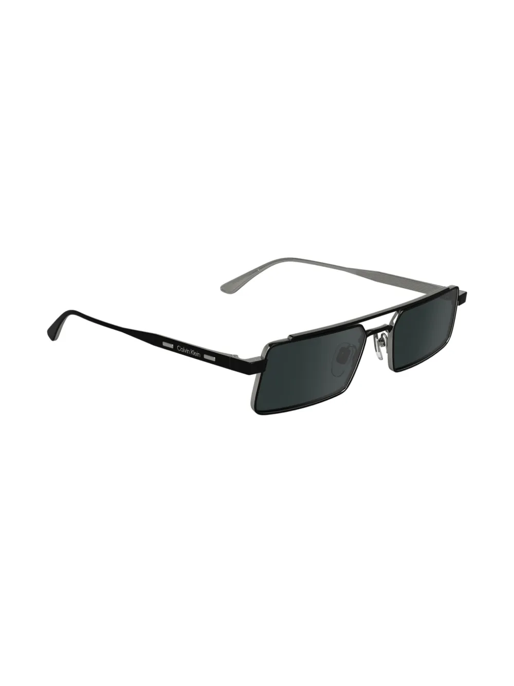 zwart metaal matte afwerking rechthoekig montuur grijze glazen dubbele neusbrug neuskussentjes rechte pootjes gebogen uiteinden