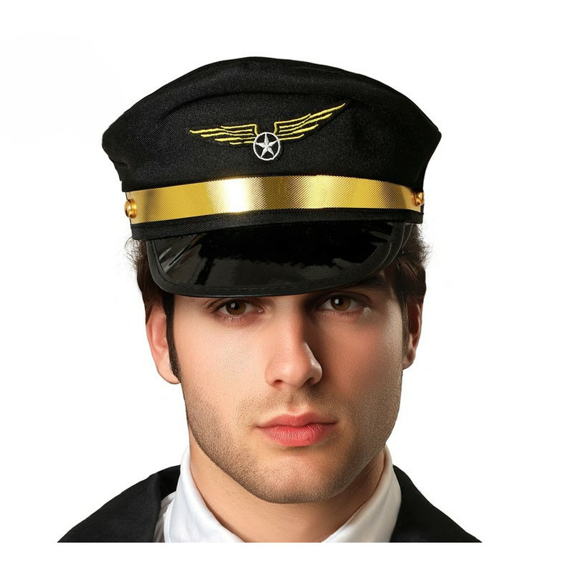 Carnaval verkleed Piloten hoedjes, geschikt voor volwassenen. Luchtvaart thema feest accessoires. Kleur: zwart/goud. Materiaal: kunststof. Carnaval/feest/party verkleedkleding accessoires. Uw verkleedoutfit is compleet als u een verkleed kostuum, zonnebril en een wings speldje toevoegt. One size model.