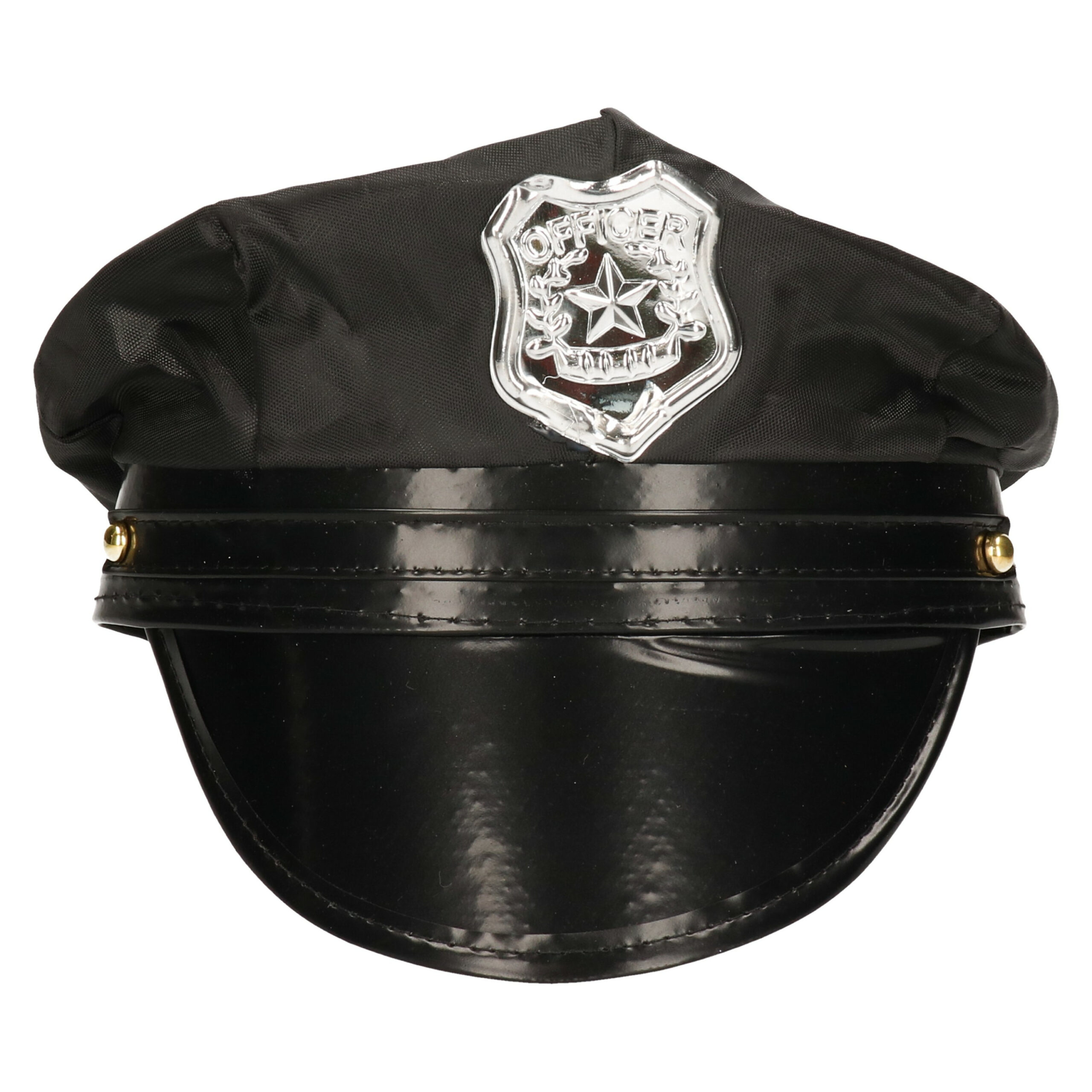 Carnaval verkleed Politie hoedje, geschikt voor kinderen. Politie thema feest accessoires. Kleur: zwart/zilver. Materiaal: kunststof. Carnaval/feest/party verkleedkleding accessoires. Uw verkleedoutfit is compleet als u een verkleed kostuum, zonnebril, een badge, handboeien en wapens toevoegt. One size model.