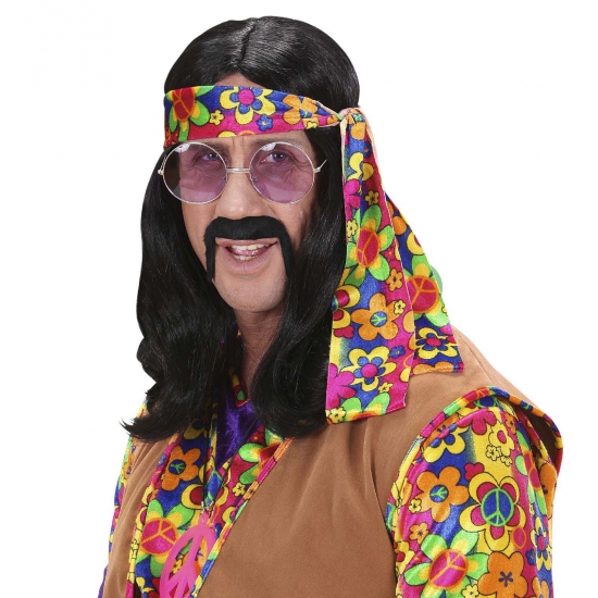 Hippie pruik met lang zwart haar. Peace, love & partytime! Met deze lange zwarte hippiepruik steel je gegarandeerd de show op elk jaren 60-feest of carnavalsavond. De golvende lokken geven je direct die relaxte flowerpower vibe ? alsof je zo uit Woodstock bent komen wandelen. Draag ?m los voor een nonchalant effect of combineer met een haarbandje voor de ultieme retro-look. Perfect voor themafeesten, foute party?s of gewoon als je even de innerlijke hippie in jezelf wilt loslaten. E?n ding is zeker: met deze pruik op je hoofd voelt iedereen meteen de liefde? en de feeststemming!