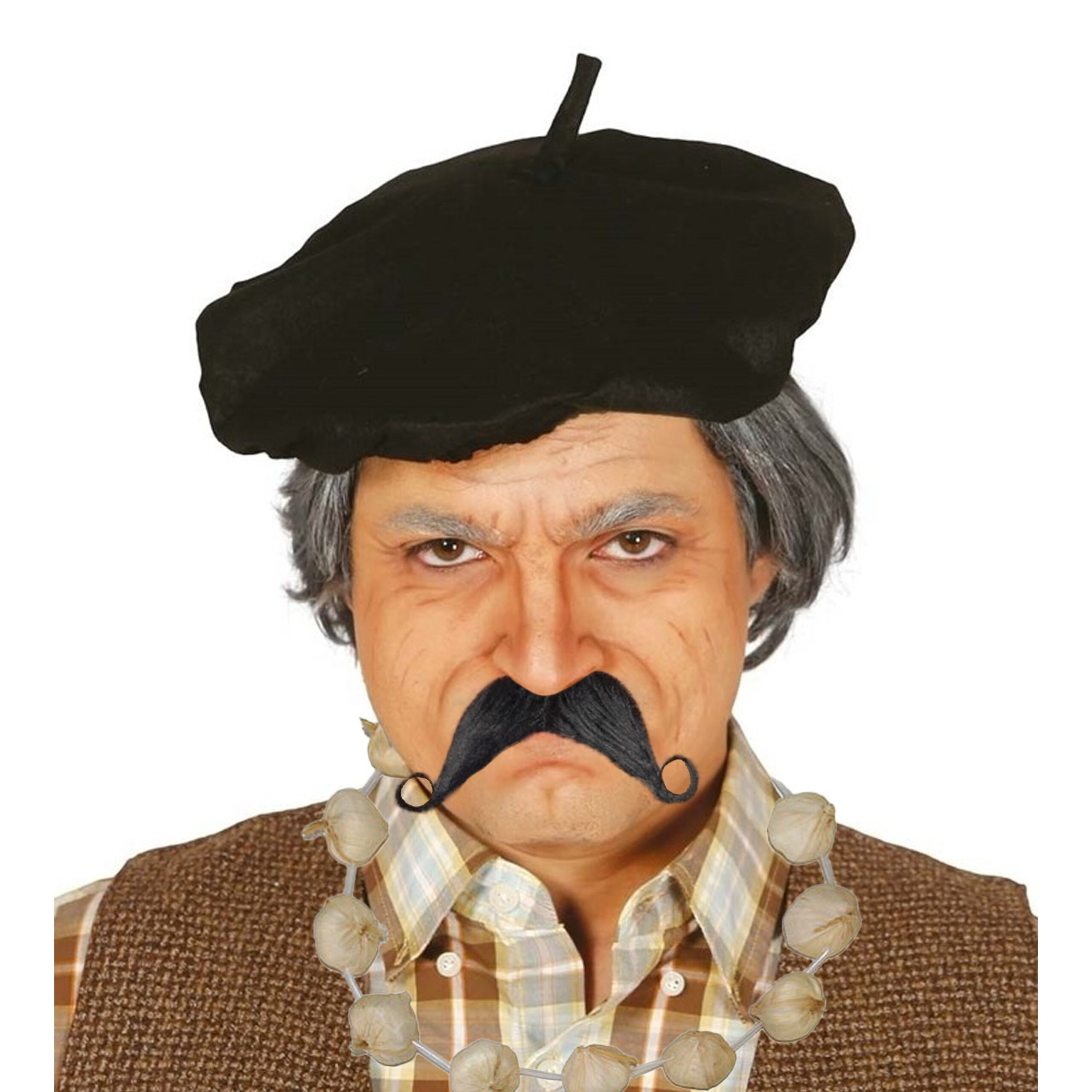 Carnaval compleet verkleed setje voor een Fransman bestaande uit een baret in het zwart, een Franse plaksnor in de kleur zwart en een knoflook ketting. Voor volwassenen, heren. Meteen verkleed zijn met deze thema verkleedset in een specefiek thema. Verkleedkleding kostuums accessoires. Themas: Frankrijk, Landen, Supporter, Fransman, Allo Allo. , Dit artikel bestaat uit:, 1x Knoflook ketting – Carnaval verkleed spullen Fransman/Dracula thema, 1x Fransman verkleed nepsnor/plaksnor – zwarte krulsnor – volwassenen, 1x Verkleed Franse baret/pet – zwart – volwassenen – verkleedkleding hoeden
