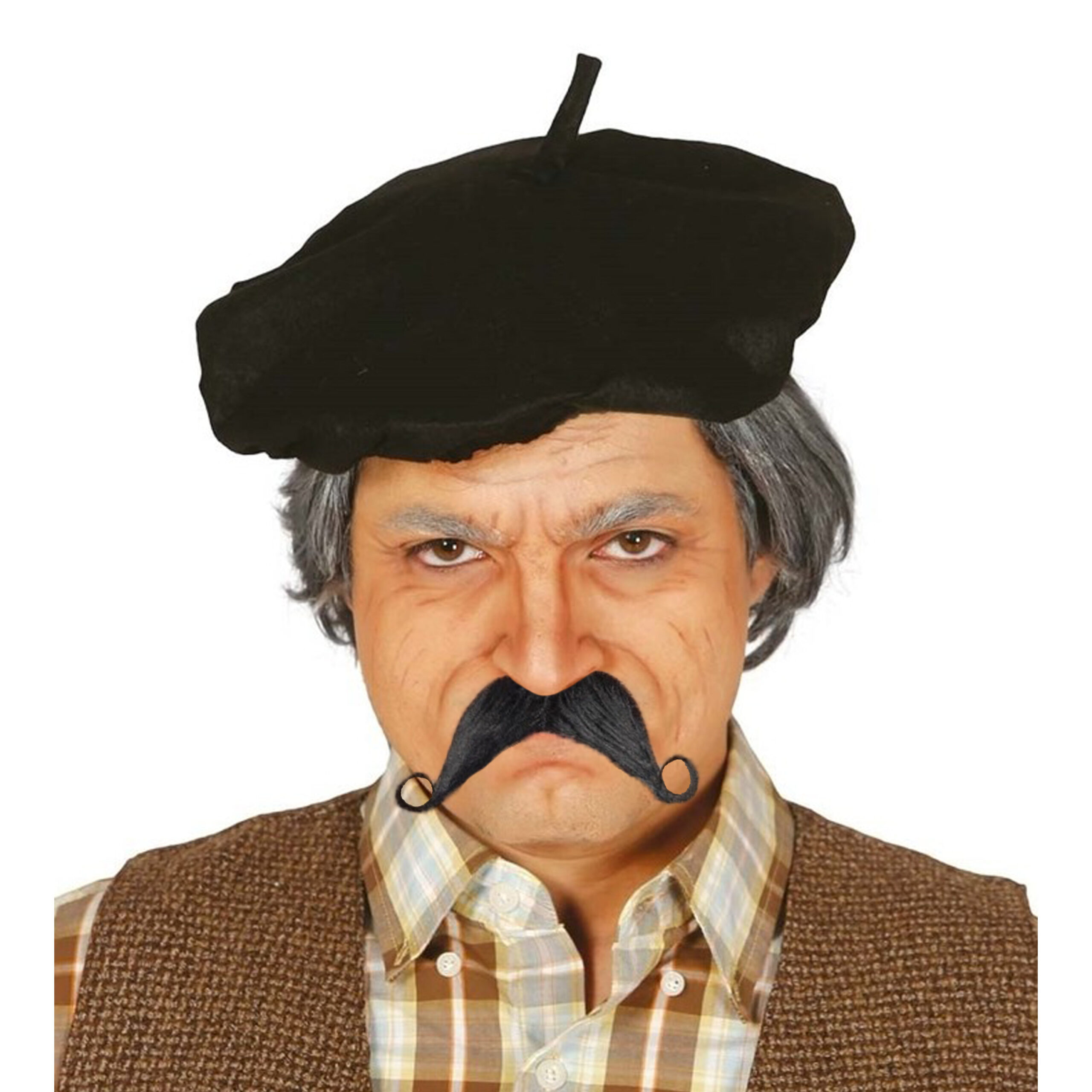 Carnaval compleet verkleed setje voor een Fransman bestaande uit een baret in het zwart en een Franse plaksnor in de kleur zwart. Voor volwassenen, heren. Meteen verkleed zijn met deze thema verkleedset in een specefiek thema. Verkleedkleding kostuums accessoires. Themas: Frankrijk, Landen, Supporter, Fransman. , Dit artikel bestaat uit:, 1x Fransman verkleed nepsnor/plaksnor – zwarte krulsnor – volwassenen, 1x Verkleed Franse baret/pet – zwart – volwassenen – verkleedkleding hoeden
