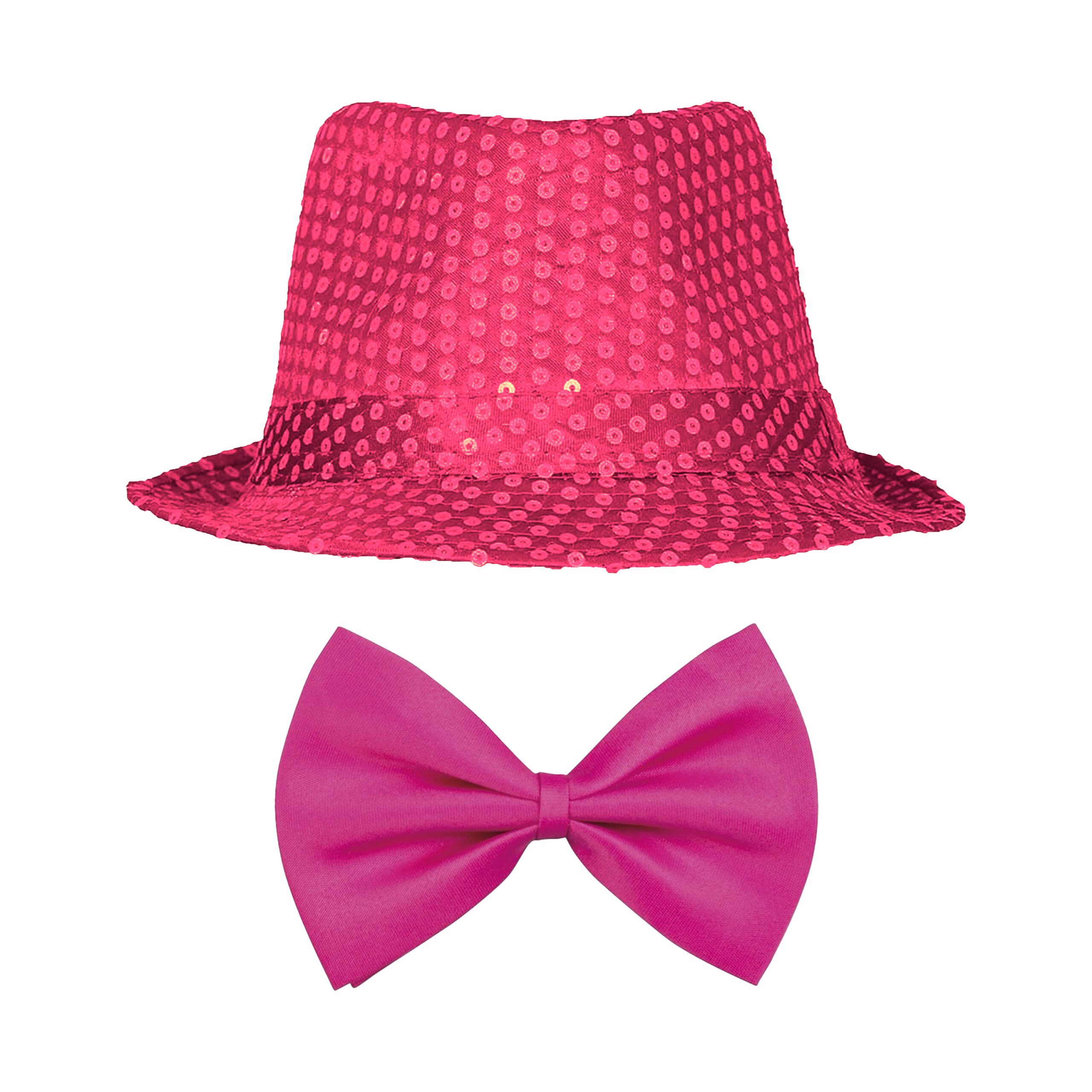 Carnaval compleet verkleed setje bestaande uit een glitter hoedje en een vlinderstrikje in de kleur roze. Voor volwassenen, dames en heren. Lekker opvallen met deze thema verkleedset in een uni kleur. Verkleedkleding kostuums accessoires. Themas: Disco, Eighties, Toppers, Glitter and Glamour, VIP. Let op: dit is een verkleedaccessoire voor volwassenen, geen speelgoed. , Dit artikel bestaat uit:, 1x Roze verkleed vlinderstrikje 11 cm voor dames/heren, 1x Carnaval verkleed hoedje – glitter fuchsia – volwassenen/heren – met paillette