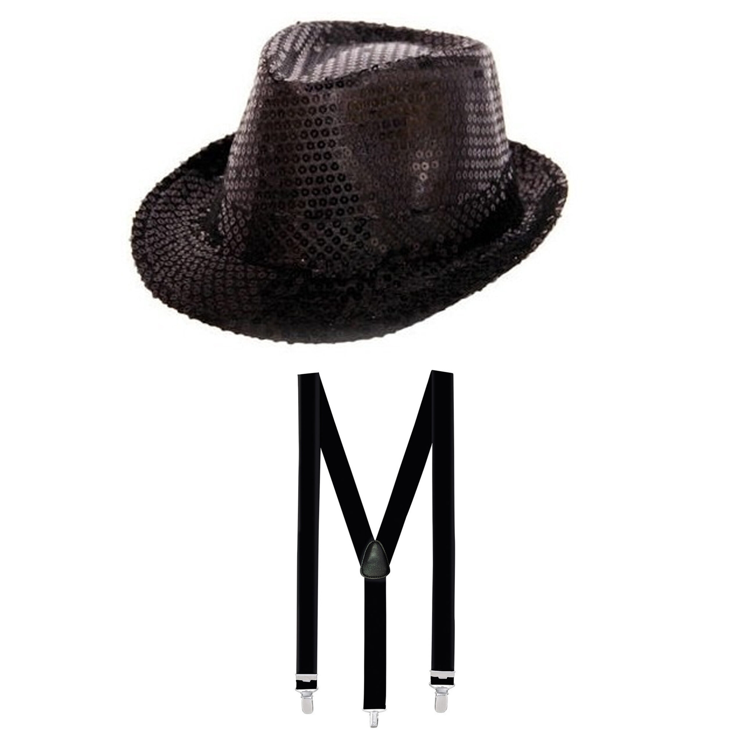 Carnaval verkleed zwart kleuren setje met glitter hoed en bretels. Het hoedje heeft pailletten. Voor volwassenen, dames en heren. Lekker opvallen met deze uni-kleur thema verkleedset. Verkleedkleding kostuums outfit accessoires zwart. Themas: Disco, Eighsuspenderss, Foute party, Toppers, Carnaval, Black and White. Let op: dit is een verkleedaccessoire voor volwassenen, geen speelgoed. , Dit artikel bestaat uit:, 1x Carnaval/verkleed bretels – tot 120 cm – zwart – Carnaval kleding accessoires, 1x Carnaval verkleed trilby hoedje met pailletten – Zwart – volwassenen – Glitter and Glamour