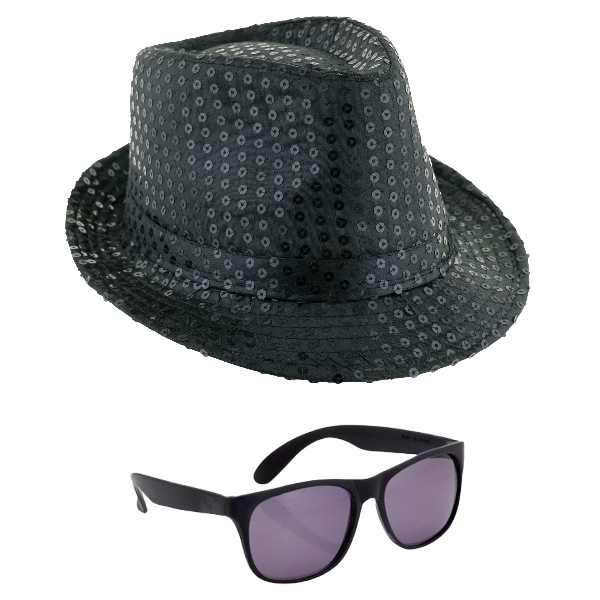 Carnaval verkleed setje bestaande uit een glitter pailletten hoedje en een party zonnebril in de kleur zwart. Voor volwassenen, dames en heren. Lekker opvallen met deze glimmende en coole thema verkleedset. Verkleedkleding kostuums accessoires in de kleur zwart. Themas: Disco, Eighties, Toppers, Glitter and Glamour, Festival. De kleuren kunnen soms iets afwijken van elkaar. Let op: dit is een verkleedaccessoire voor volwassenen, geen speelgoed. , Dit artikel bestaat uit:, 1x Party zonnebril – zwart – kunststof – UV400 – verkleedbril voor volwassenen, 1x Carnaval verkleed hoedje – Trilby – zwart – glitter pailletten – heren/dames – Carnaval