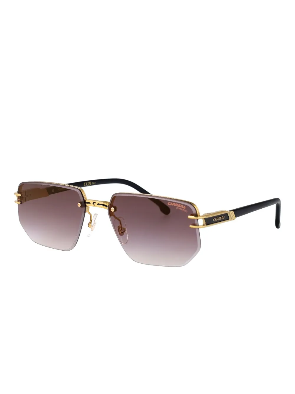 bruin randloos montuur goudkleurige details glazen met kleurverloop acetaat tempels rechthoekig montuur Deze bril wordt verkocht met een beschermhoes.