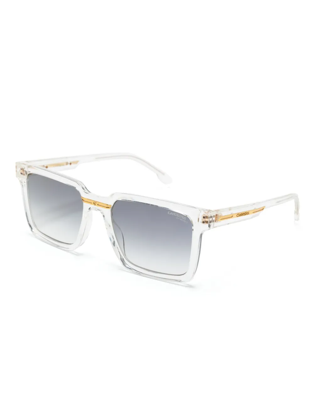 goudkleurig acetaat doorzichtig montuur vierkant montuur glazen met kleurverloop glazen met UV-bescherming pootje met gegraveerd logo geschulpte pootjes gebogen uiteinden Deze bril wordt verkocht met een beschermhoes.