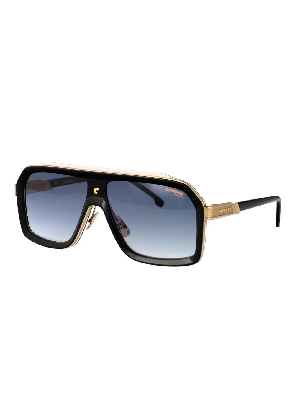 zwart navigator montuur goudkleurig logo glazen met kleurverloop rechte pootjes Deze bril wordt verkocht met een beschermhoes.