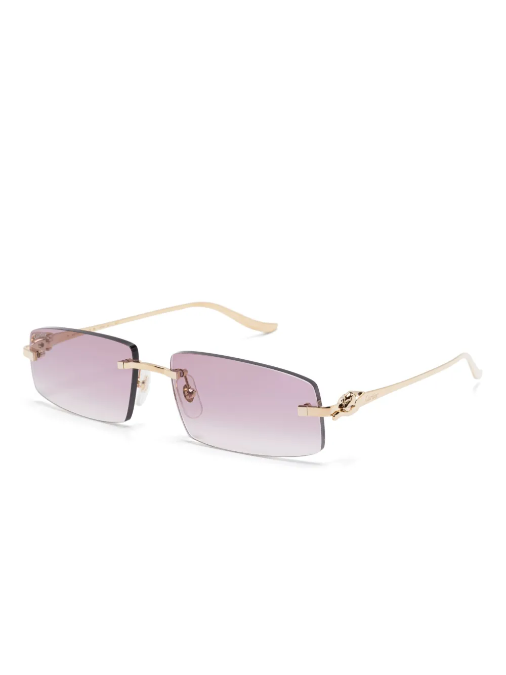 goudkleurig metaal gepolijste afwerking frameloos design rechthoekig montuur glazen met kleurverloop glazen met UV-bescherming lens sticker neuskussentjes rechte pootjes pootjes met gegraveerd logo gebogen uiteinden Deze bril wordt verkocht met een beschermhoes.