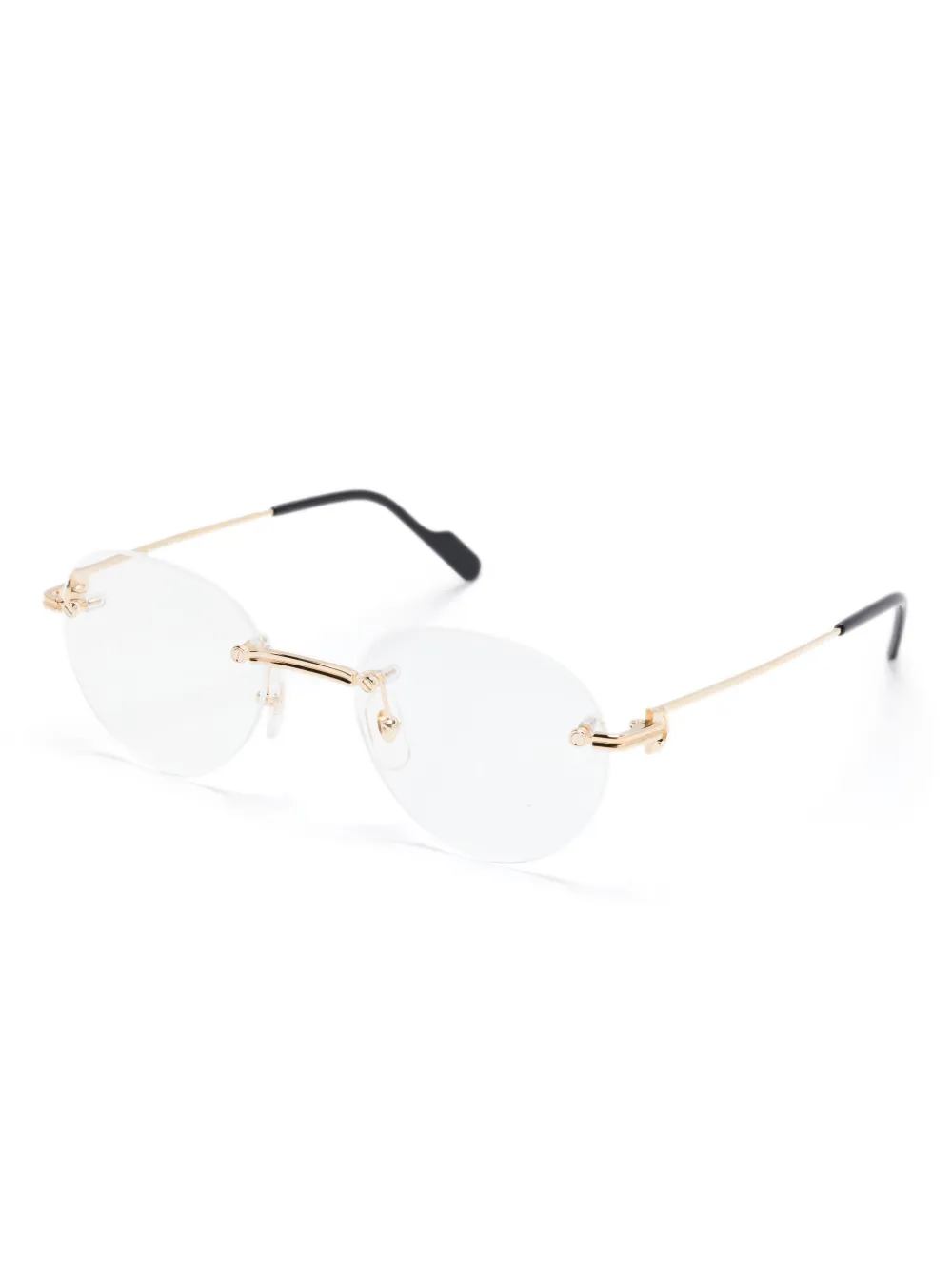 zwart/goudkleurig metaal metallic afwerking C logoplakkaat tweekleurig design rond montuur doorzichtige glazen rechte pootjes tips met gegraveerd logo neuskussentjes Deze bril wordt verkocht met een beschermhoes. Alle brillen op FARFETCH worden verkocht met glazen die niet op sterkte zijn.