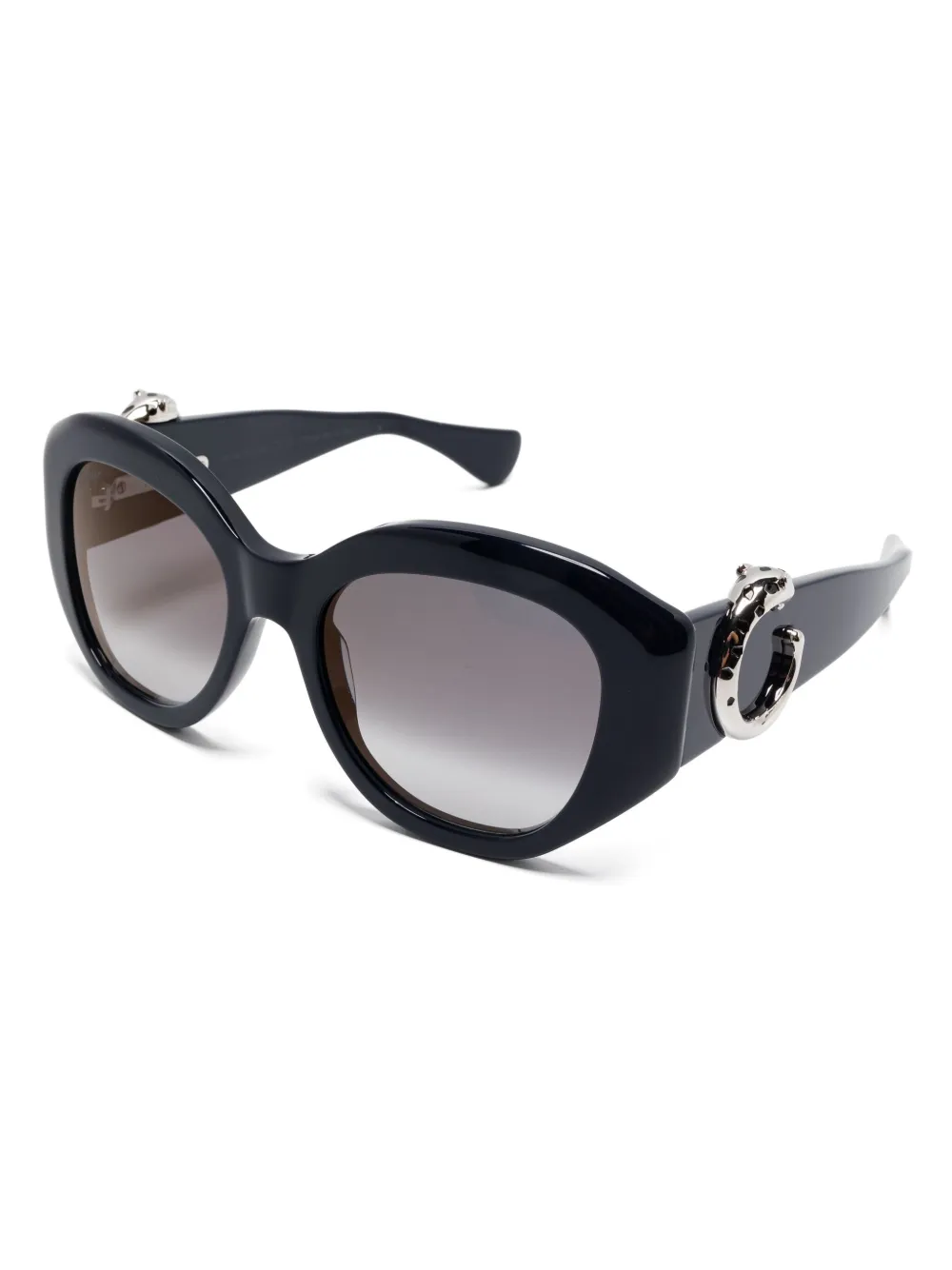 marineblauw oversized montuur glazen met kleurverloop neuskussentjes kenmerkend panterplakkaat oversized pootjes gebogen uiteinden Deze bril wordt verkocht met een beschermhoes.
