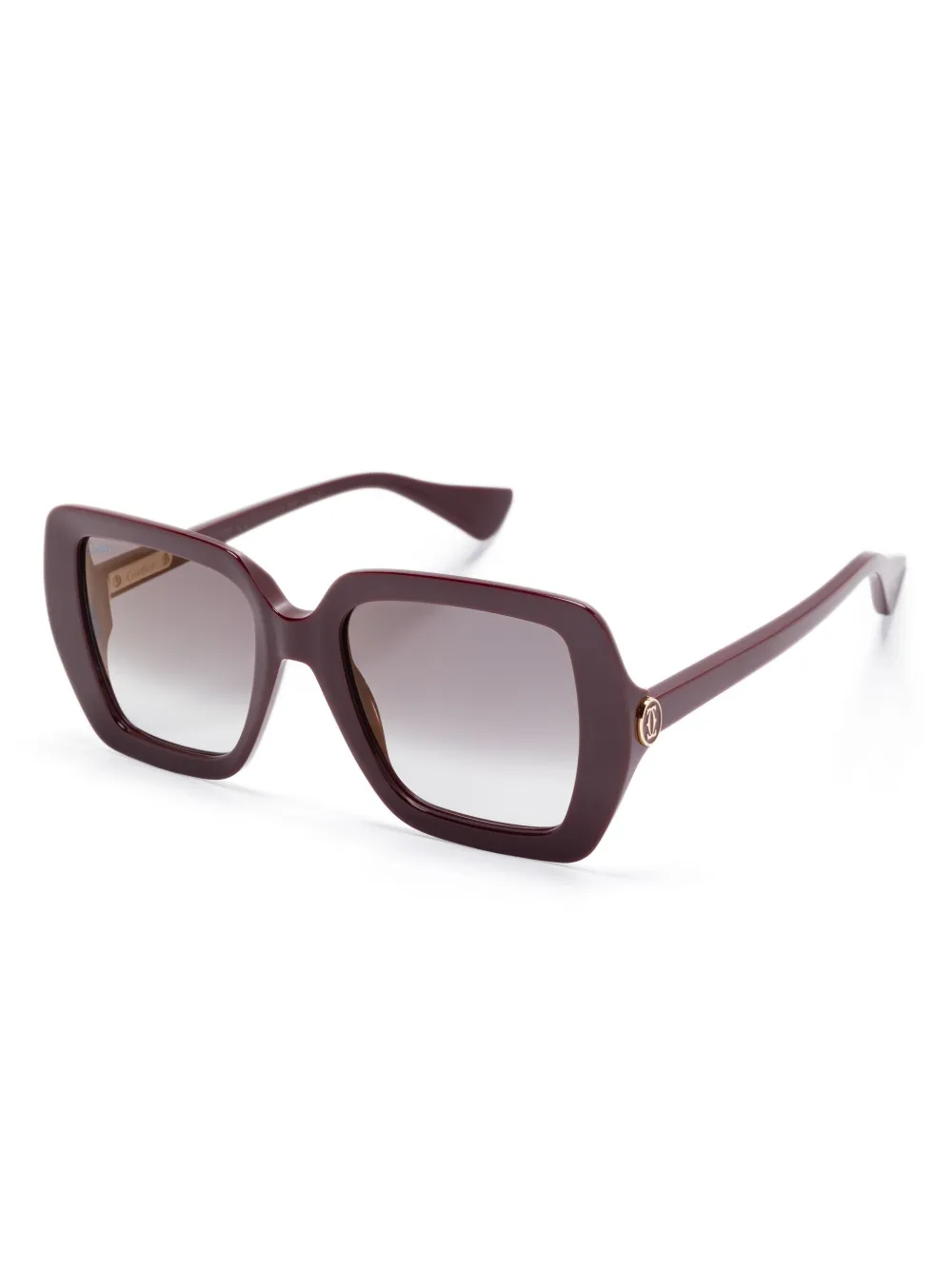 bordeauxrood acetaat gegraveerd logo op uiteinden logo applicatie lens sticker oversized montuur glazen met kleurverloop glazen met UV-bescherming rechte pootjes gebogen uiteinden Deze bril wordt verkocht met een beschermhoes.