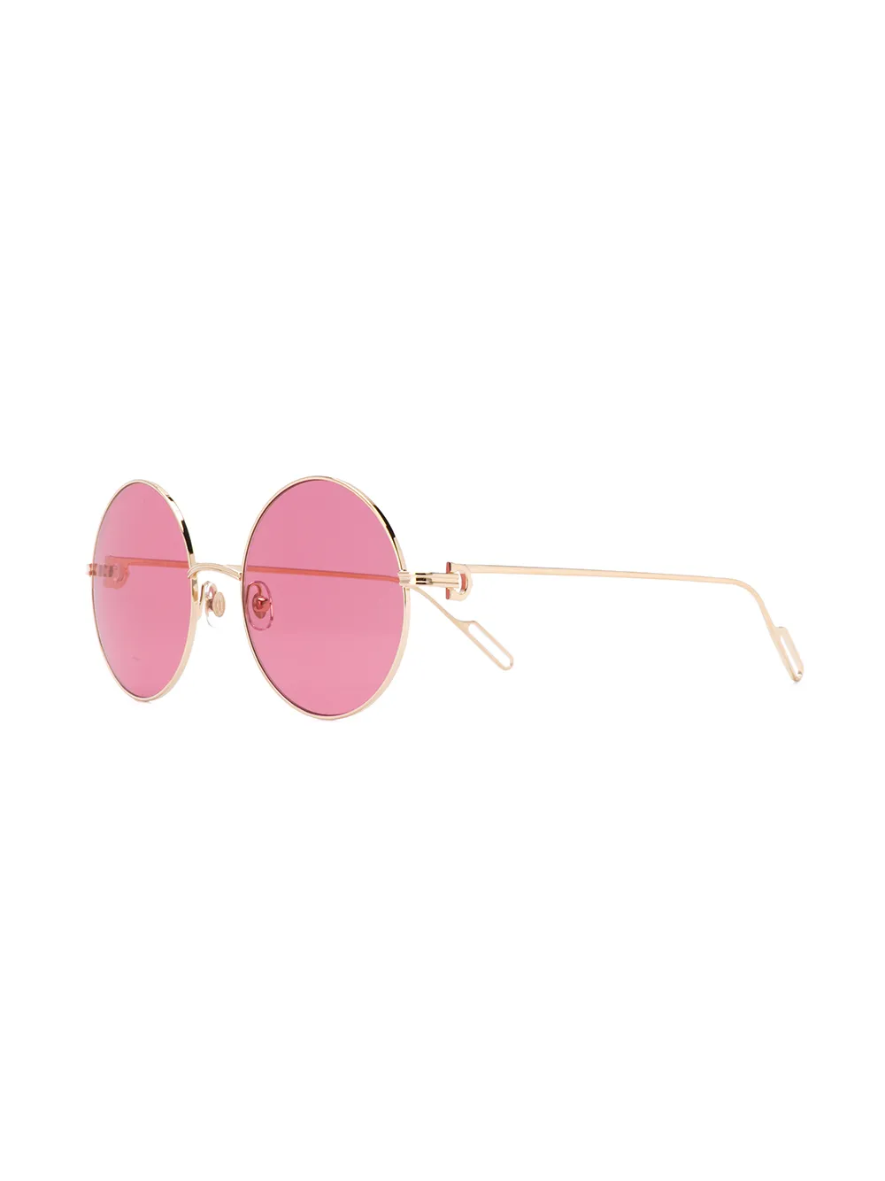 Zonnebril met rond montuur van Cartier uitgevoerd in titanium voorzien van donker getinte glazen en logo aan de buitenkant van de armen. Het artikel is inclusief beschermende hoes.