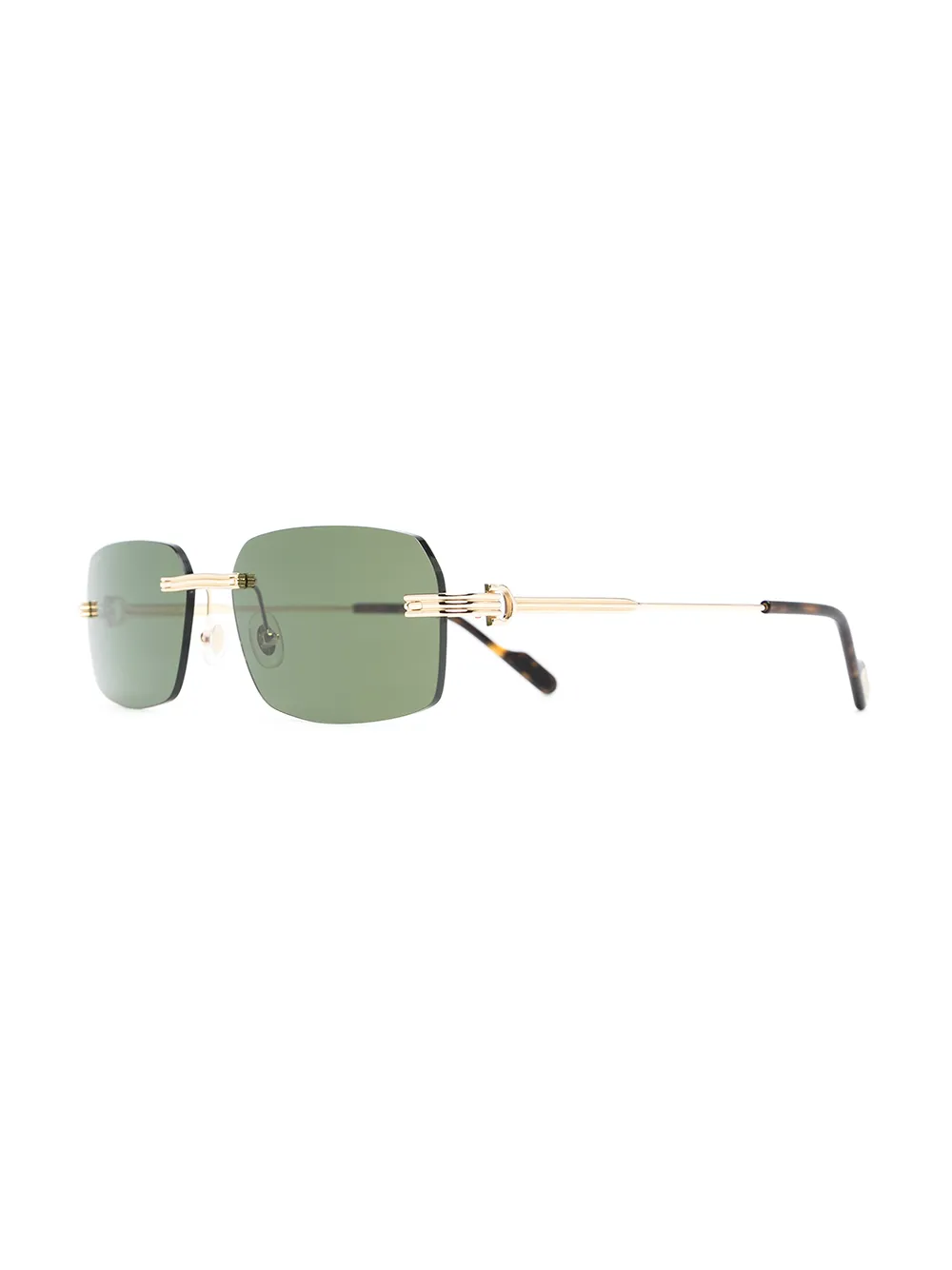 Vierkant montuur, groengetinte glazen en gewelfde pootjes. Materiaal: metaal. We weten dat je ervoor zorgt dat jouw nieuwe aankoop niets overkomt, maar voor de zekerheid zit er een beschermende hoes bij deze bril.