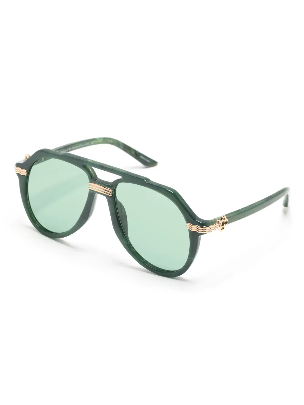 donkergroen/goudkleurig acetaat piloten montuur groen getinte glazen goudkleurige afwerking monogram detail bij de tempel rechte pootjes gebogen uiteinden Deze bril wordt verkocht met een kenmerkende Casablanca beschermhoes.