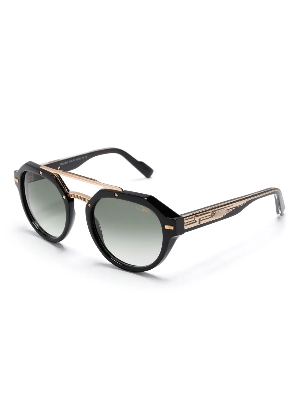 zwart acetaat rond montuur metalen staaf bij de wenkbrauwen glazen met kleurverloop rechte pootjes logoplakkaat op de poot gebogen uiteinden Deze bril wordt verkocht met een beschermhoes.