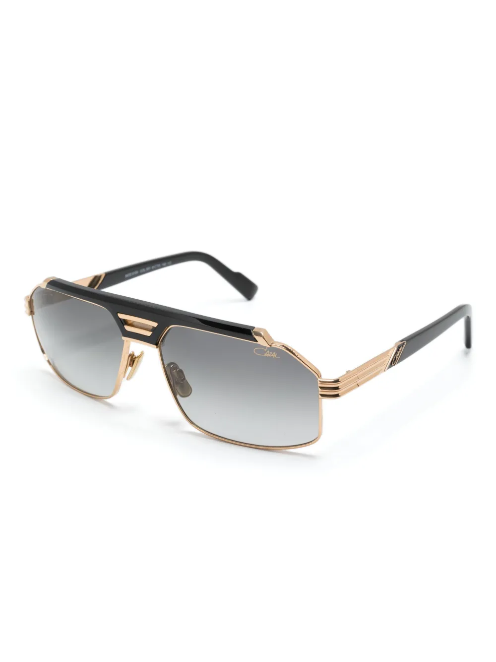 goudkleurig/zwart acetaat/vergulde hardware poten met gegraveerd logo lens sticker navigator montuur glazen met kleurverloop glazen met UV-bescherming neuskussentjes rechte pootjes gebogen uiteinden Deze bril wordt verkocht met een beschermhoes.
