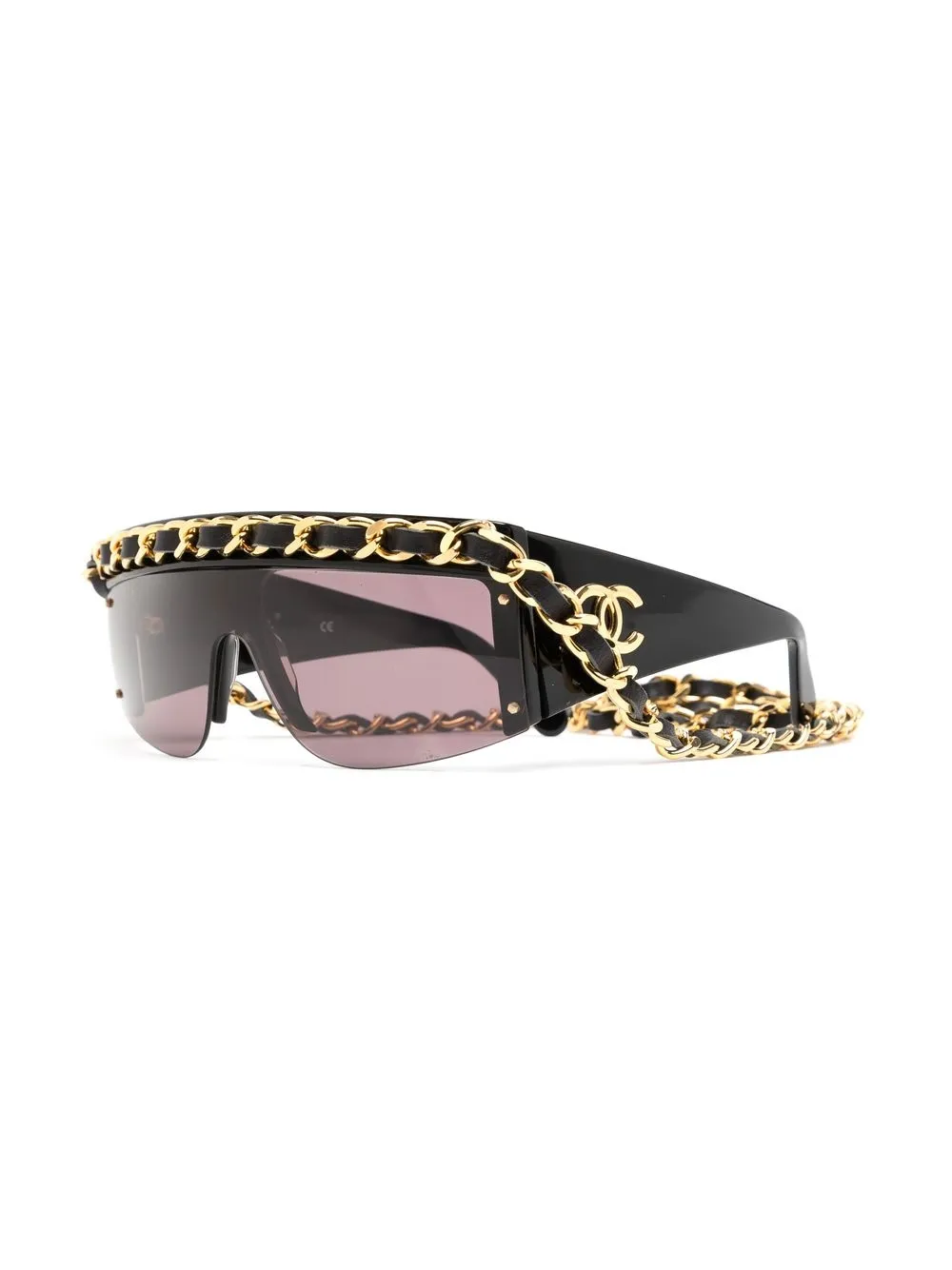 circa 1990-2000s zwart verguld zonneklep kenmerkend CC-logo gekleurde glazen schakelhalskoord oversized pootjes Staat: GOED. Dit item is eerder in iemands bezit geweest en gebruikt, maar verkeert in goede staat met minimale gebruikssporen. Dit kan vervaging van materiaal of beplating en krassen omvatten.