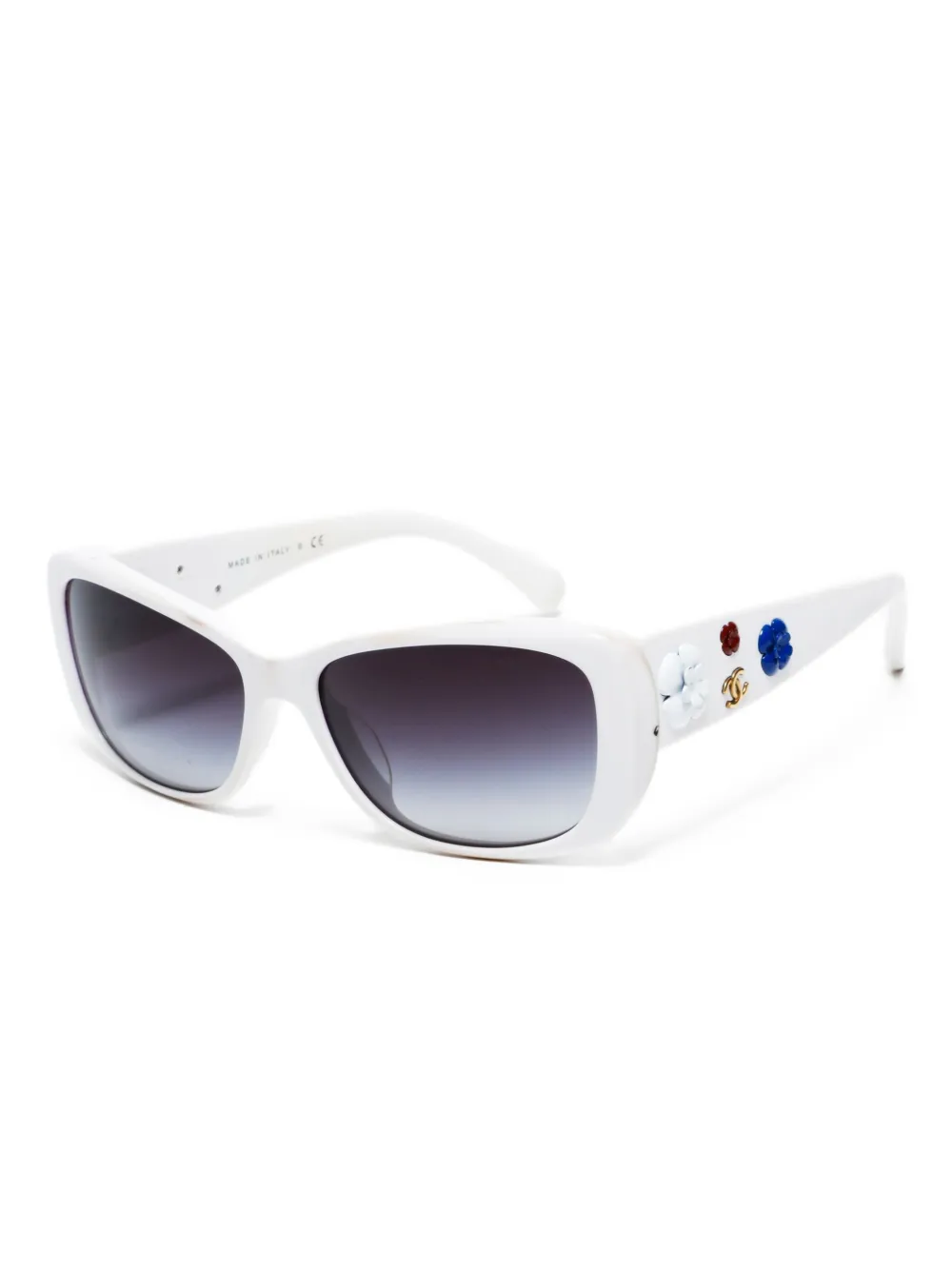 2000s wit glazen met kleurverloop rechthoekig montuur Camellia versiering Deze bril wordt verkocht met een beschermhoes. Staat: GOED. Dit item is eerder in iemands bezit geweest en gebruikt, maar verkeert in goede staat met minimale gebruikssporen. Dit kan vervaging van materiaal of plating en krassen omvatten.