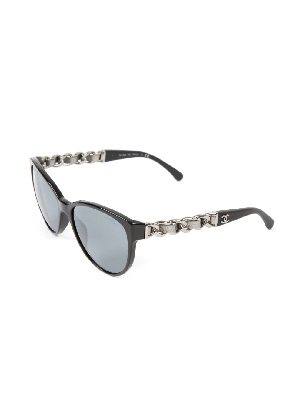circa 2000s zwart acetaat schakelkettingdetails cat-eye montuur glazen met kleurverloop kenmerkend CC-logo gebogen uiteinden