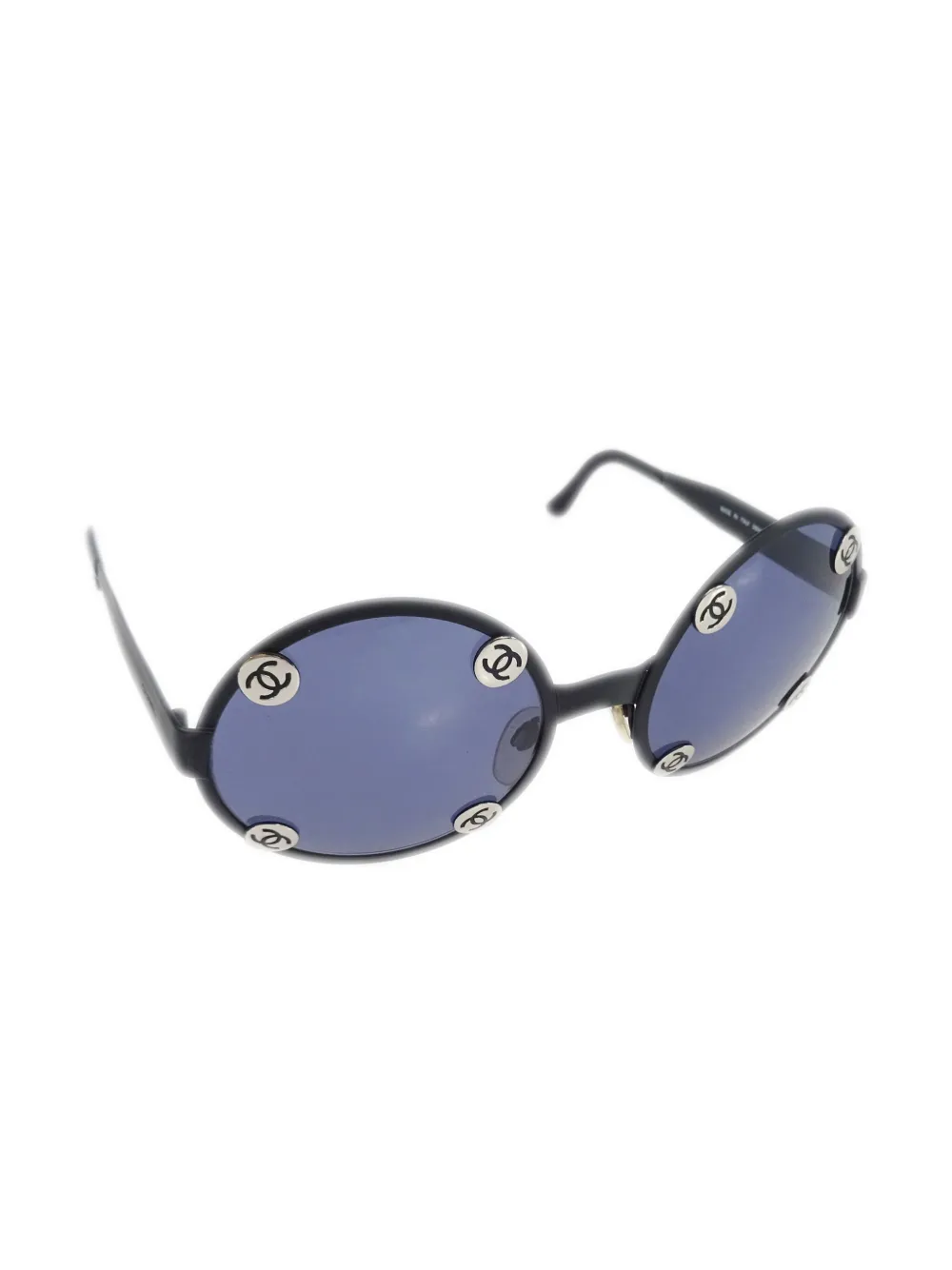 zwart rond montuur gekleurde glazen kenmerkend CC-logo rechte pootjes gebogen uiteinden Staat: GOED. Dit item is eerder in iemands bezit geweest en gebruikt, maar verkeert in goede staat met minimale gebruikssporen. Dit kan vervaging van materiaal of beplating en krassen omvatten.