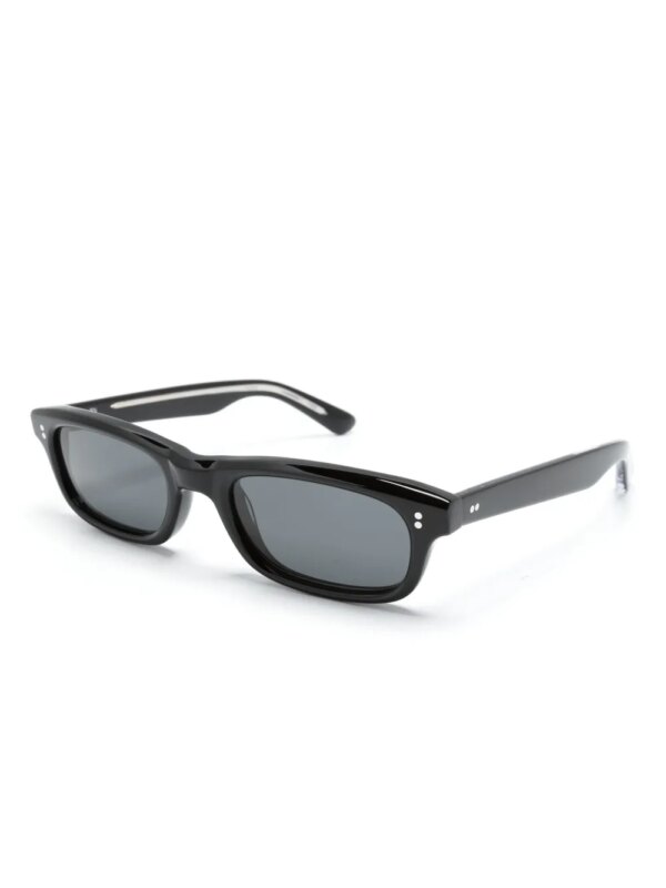 zwart acetaat rechthoekig montuur grijze glazen rechte pootjes gebogen uiteinden Deze bril wordt verkocht met een beschermhoes.