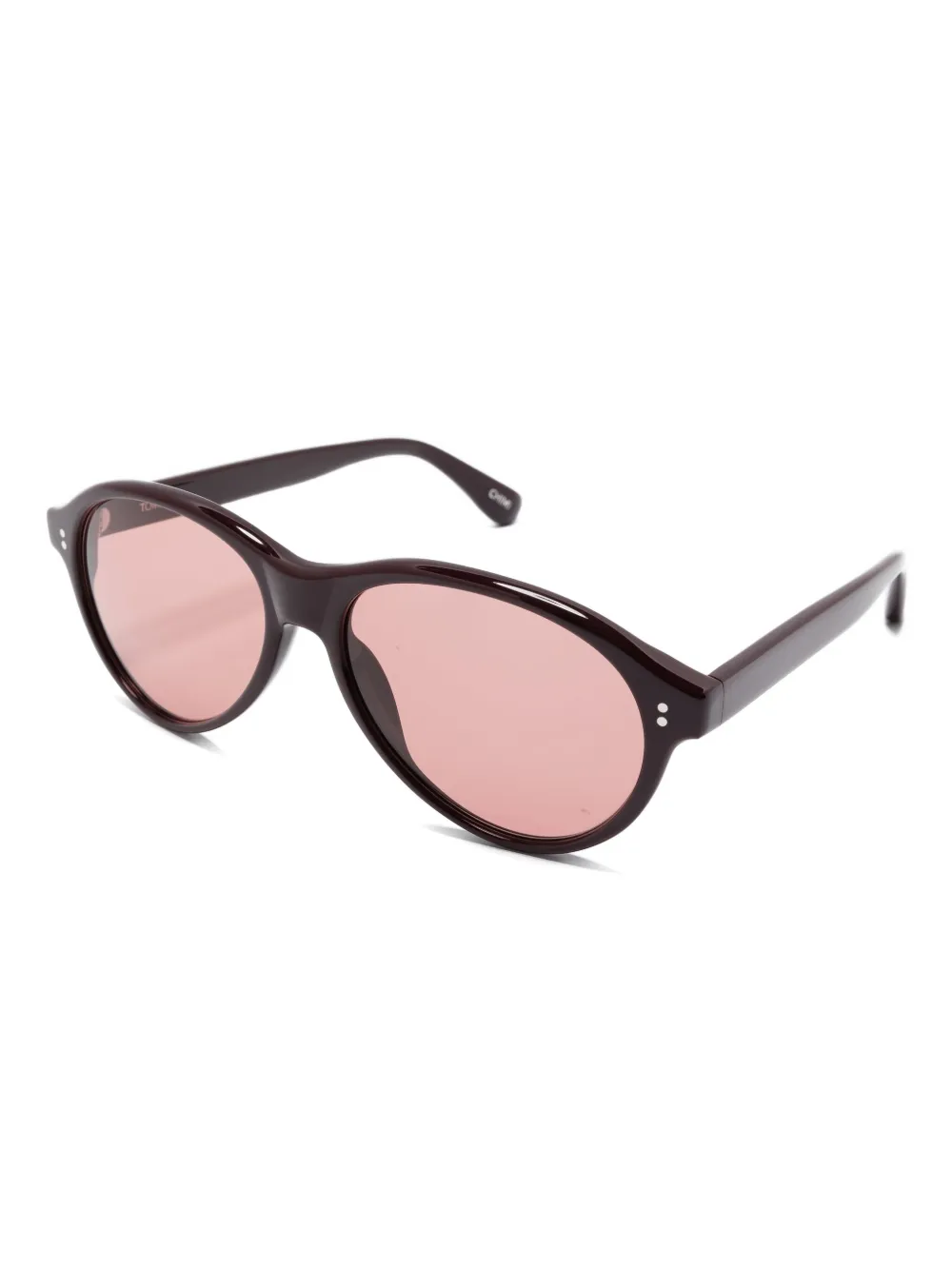 donkerrood piloten montuur roze glazen detail op de pootjes acetaat montuur Deze bril wordt verkocht met een beschermhoes.