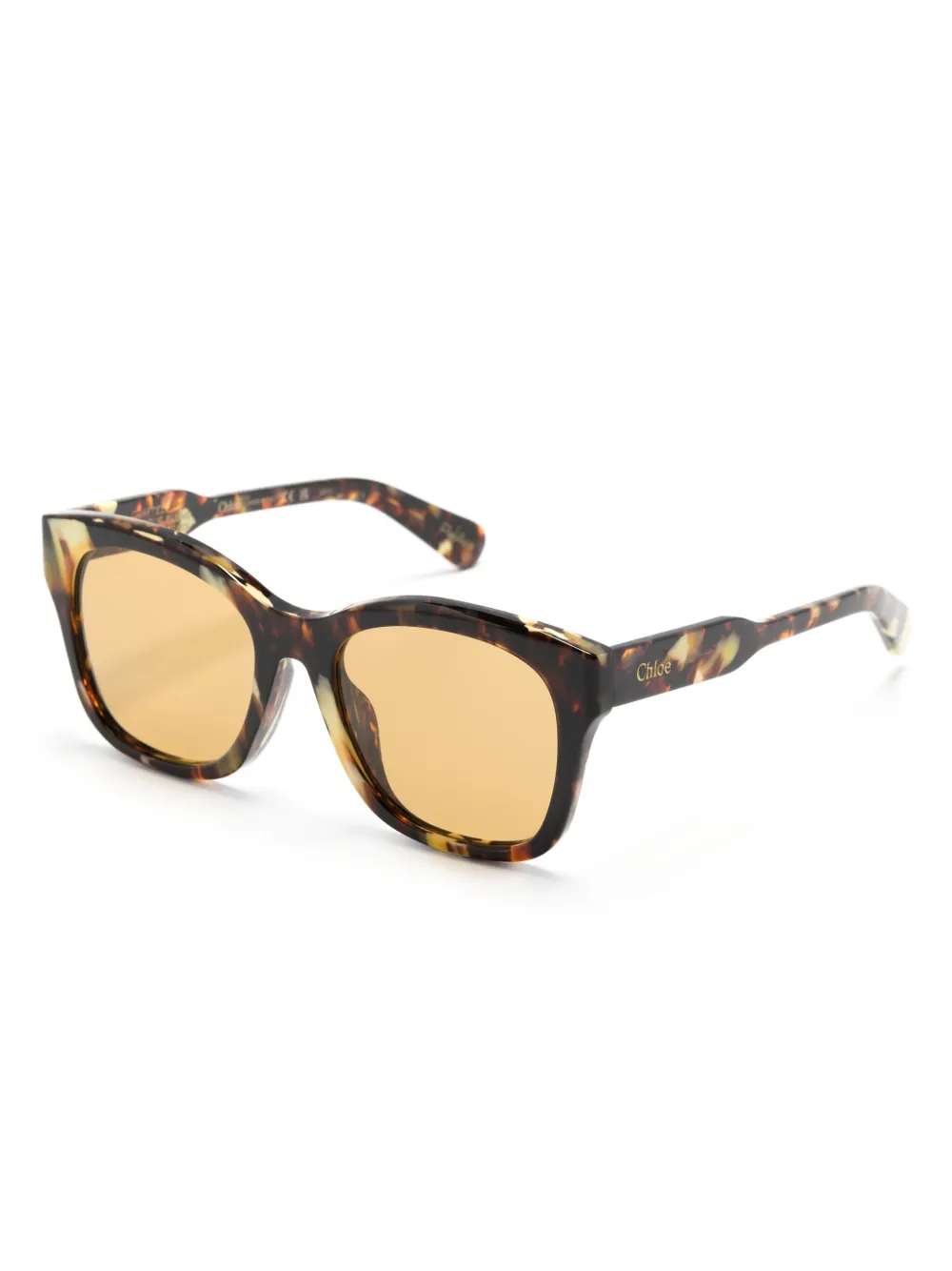 cederbruin acetaat schildpadschild effect cat-eye montuur gele glazen rechte pootjes gebogen uiteinde Deze bril wordt verkocht met een beschermhoes.