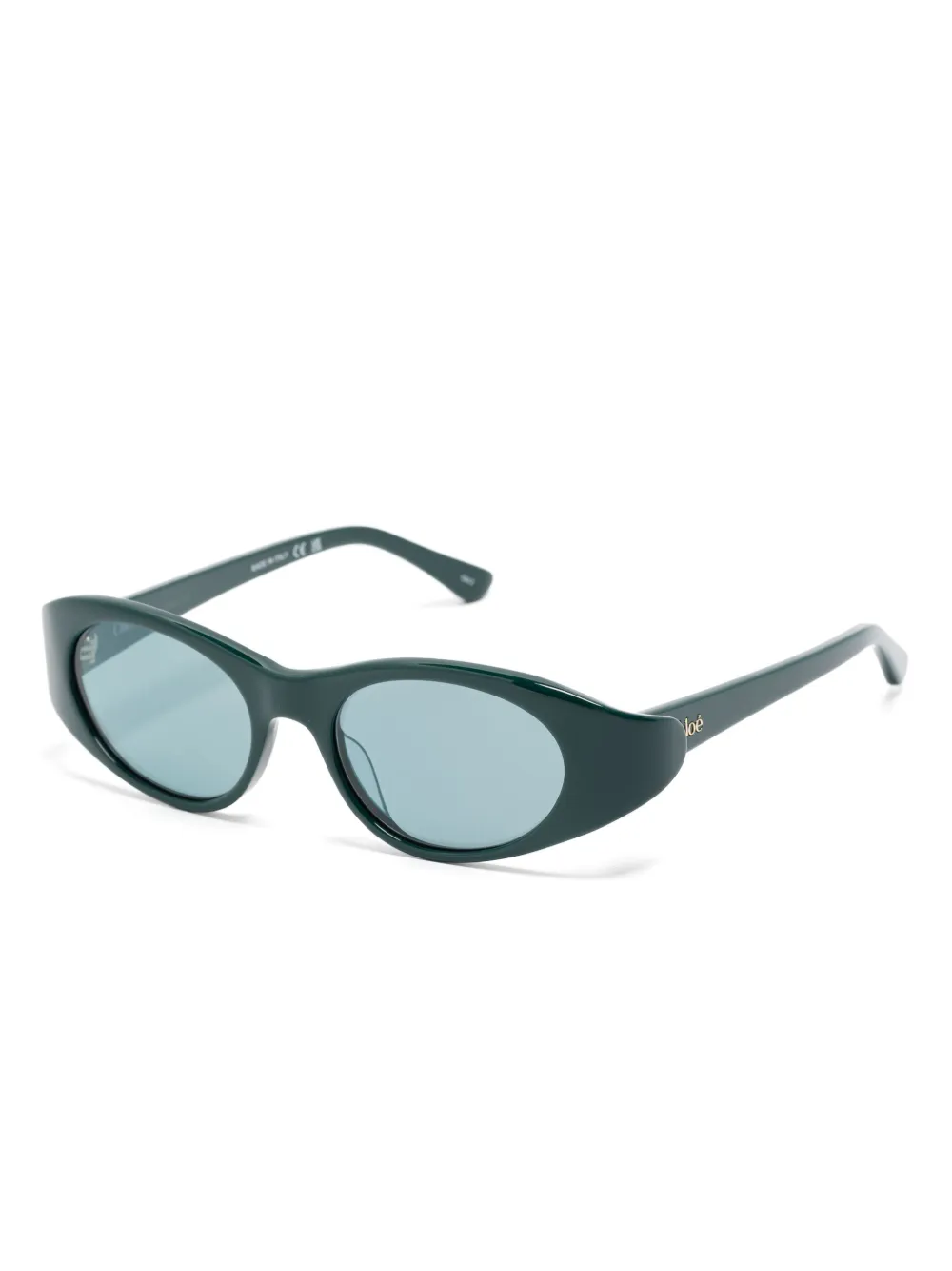 groen blauwe glazen ovalen montuur rechte pootjes Deze bril wordt verkocht met een beschermhoes.