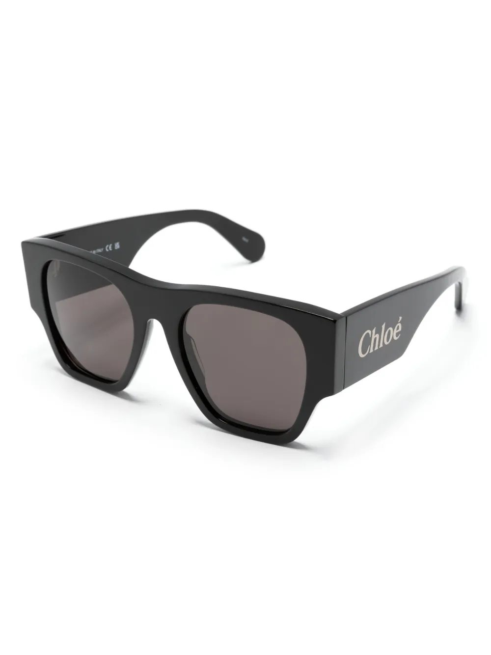 zwart acetaat D-montuur gekleurde glazen glazen met UV-bescherming rechte pootjes pootje met gegraveerd logo gebogen uiteinden Deze bril wordt verkocht met een beschermhoes.