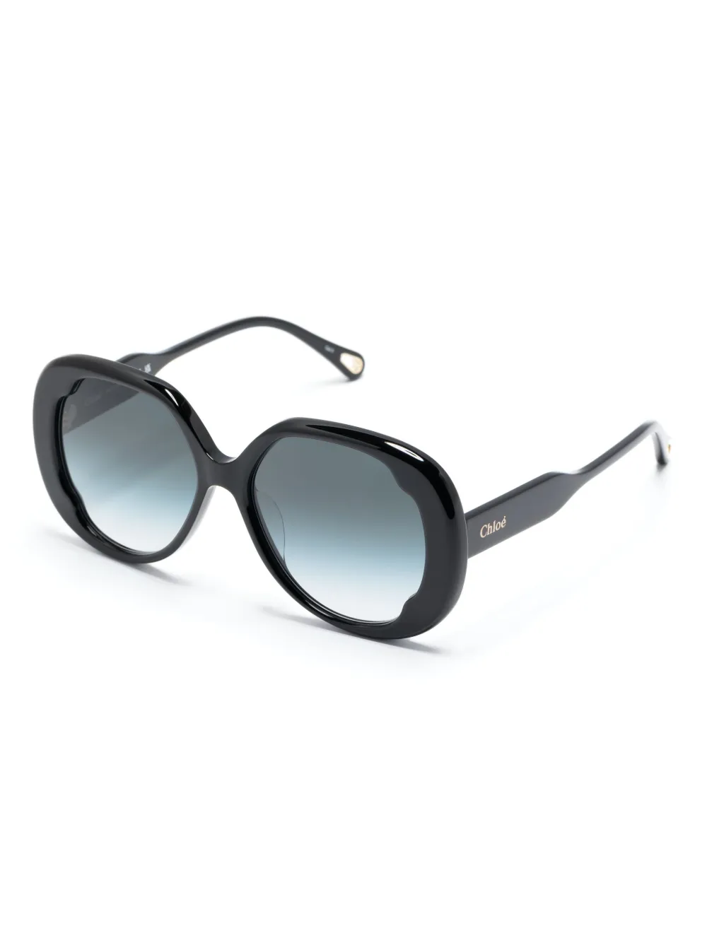zwart acetaat oversized montuur glazen met kleurverloop glazen met UV-bescherming goudkleurig logo rechte pootjes gebogen uiteinde Deze bril wordt verkocht met een beschermhoes.