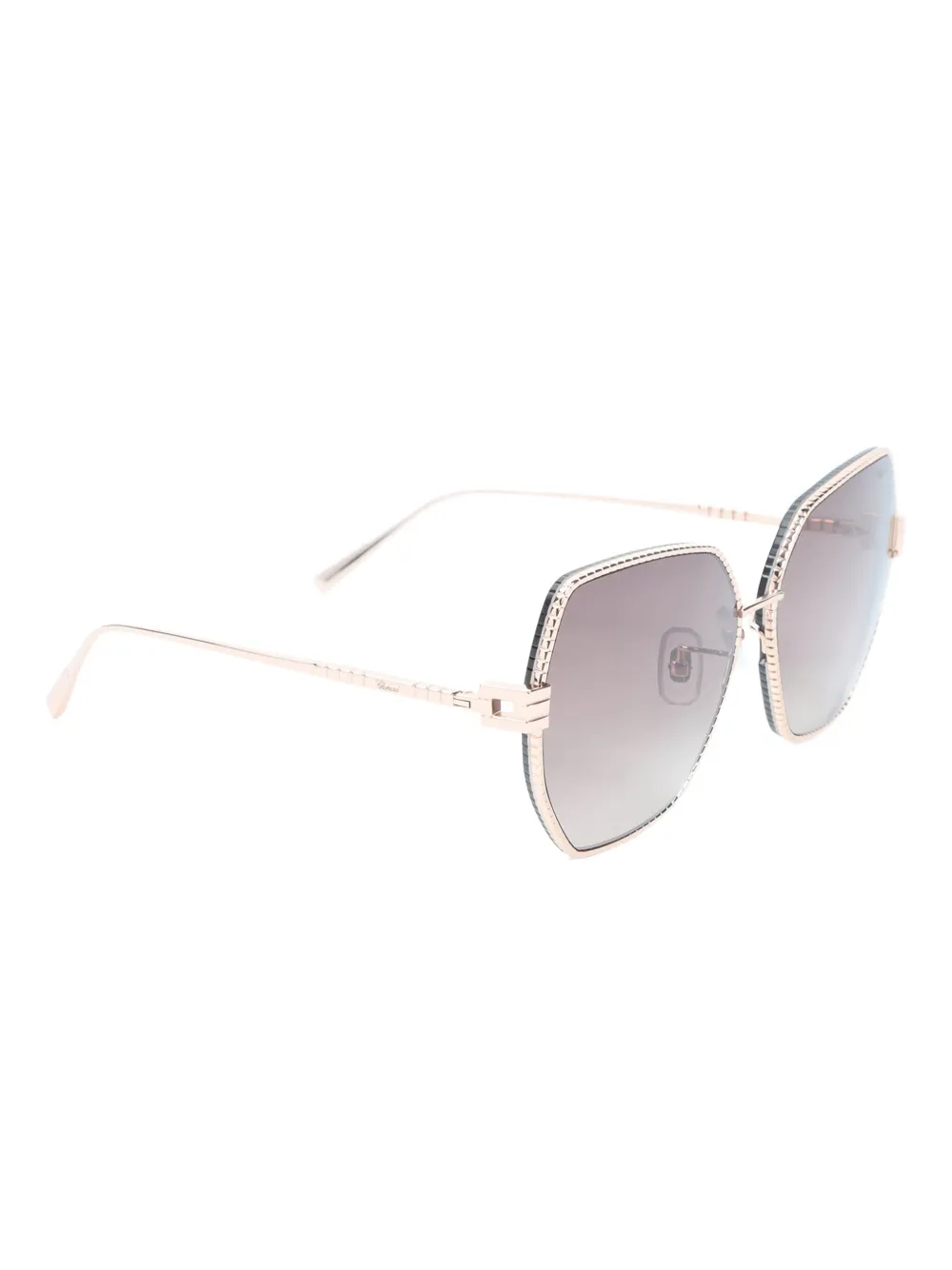 grijs verfraaid montuur glazen met kleurverloop logodetail op de pootjes dunne metalen pootjes Deze bril wordt verkocht met een beschermhoes.