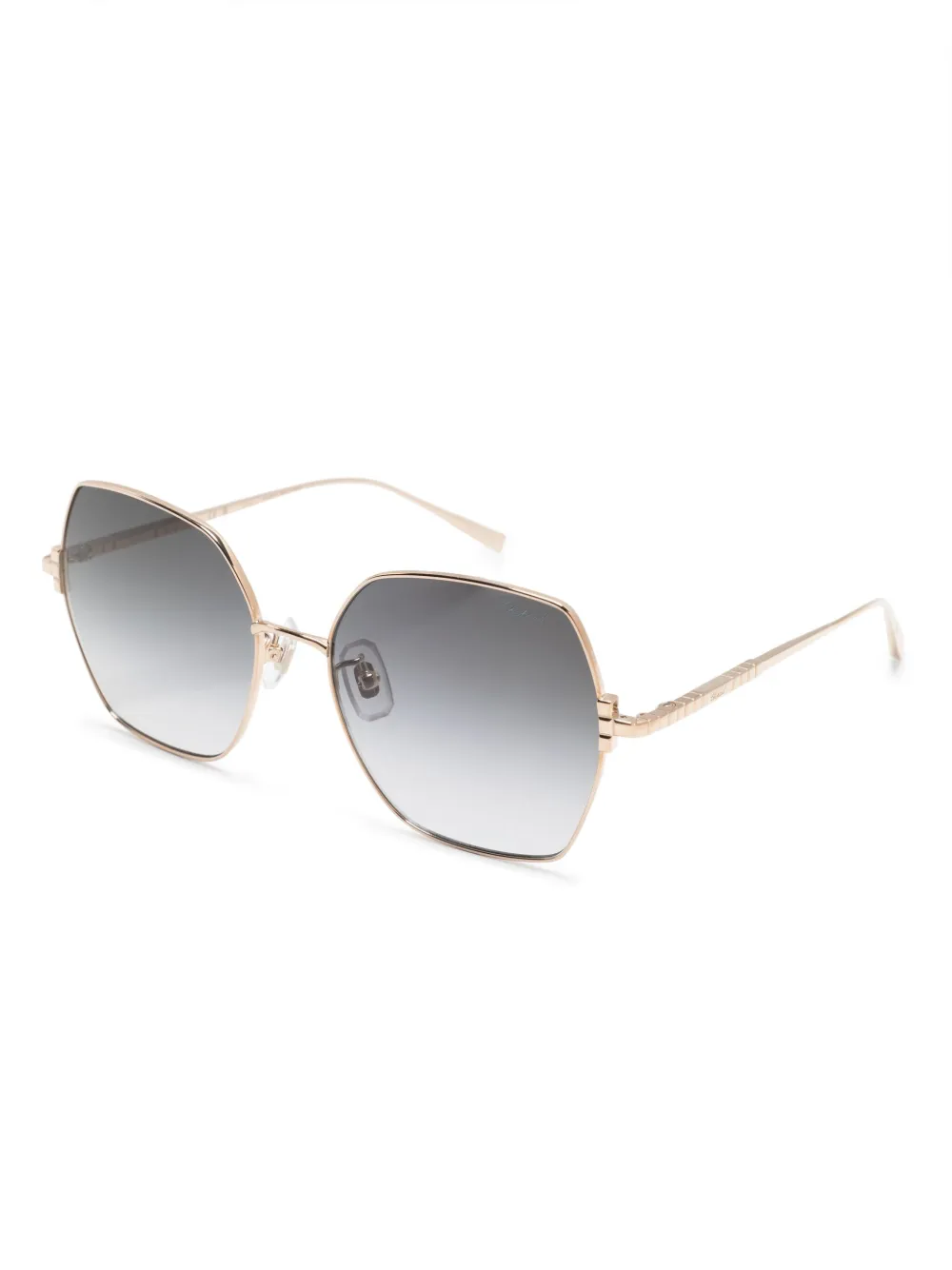 goudkleurig titanium vierkant montuur glazen met UV-bescherming neuskussentjes logo lens sticker rechte poten met gebogen uiteinden Deze bril wordt verkocht met een beschermhoes.