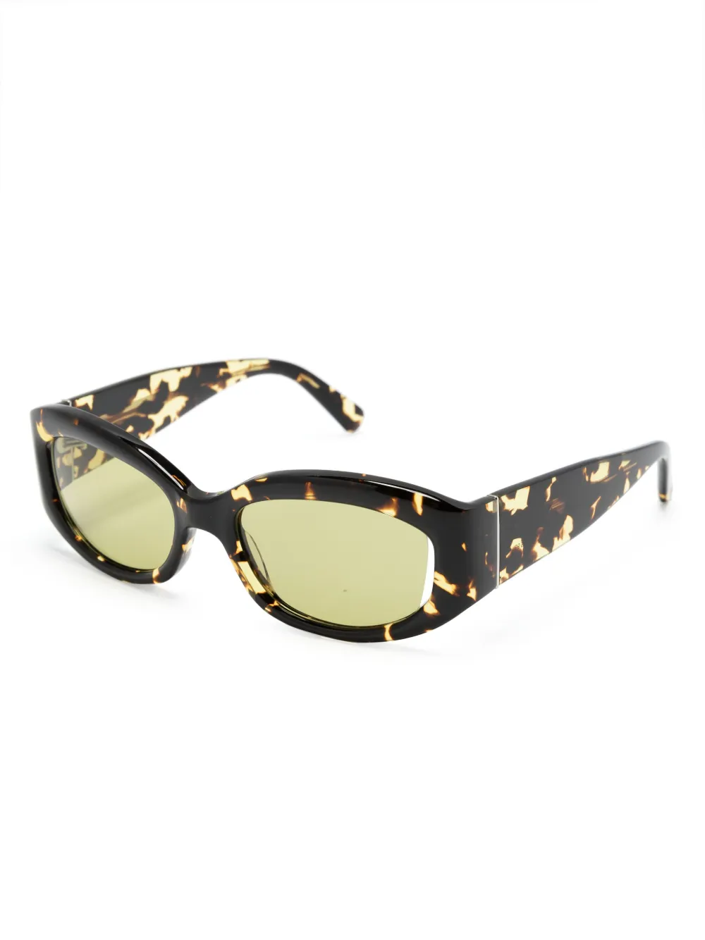 Havana bruin/camel geel acetaat schildpad montuur ovaal montuur gekleurde glazen UV-bescherming rechte pootjes gebogen uiteinden Deze bril wordt verkocht met een beschermhoes.