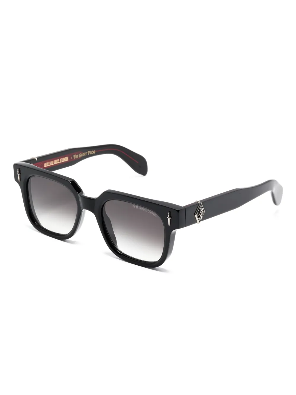 zwart applicatiedetail aan de voorzijde applicatiedetails op de poten lens sticker vierkant montuur glazen met kleurverloop glazen met UV-bescherming gewelfde pootjes gebogen uiteinden Deze bril wordt verkocht met een beschermhoes.