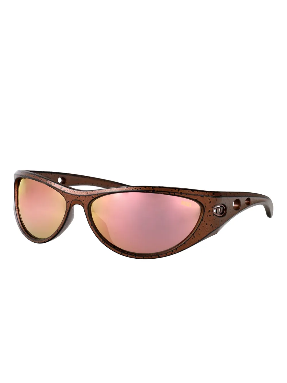 bruin gespikkeld effect geometrisch montuur gespiegelde glazen geperforeerd detail acetaat Deze bril wordt verkocht met een beschermhoes.