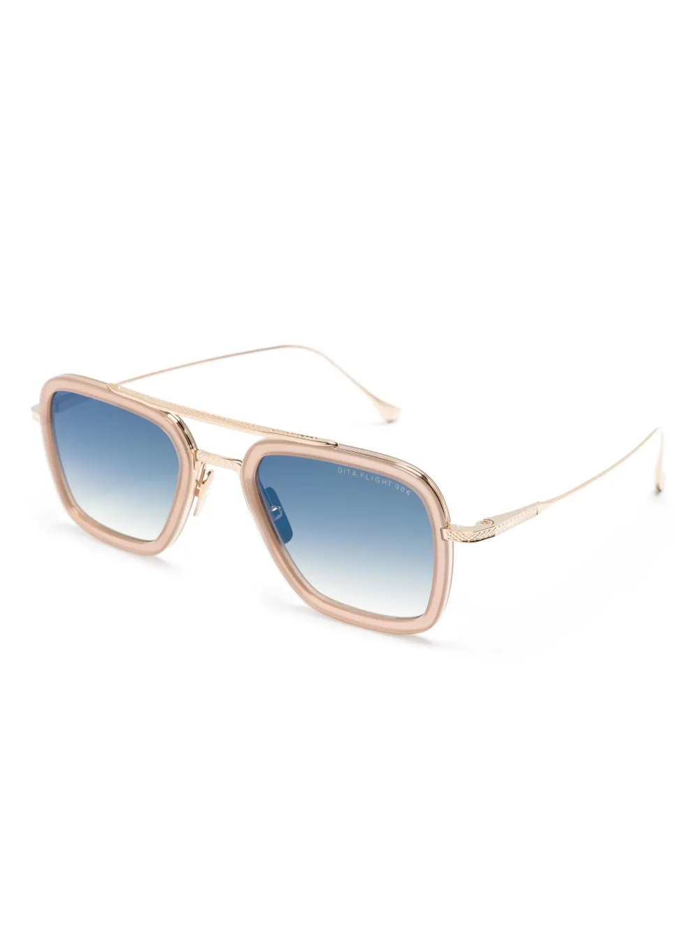 goudkleurig/roze acetaat/titanium piloten montuur blauwe glazen neuskussentjes dubbele neusbrug glazen met UV-bescherming gestrekte poten met gebogen uiteinden Deze bril wordt verkocht met een beschermhoes.