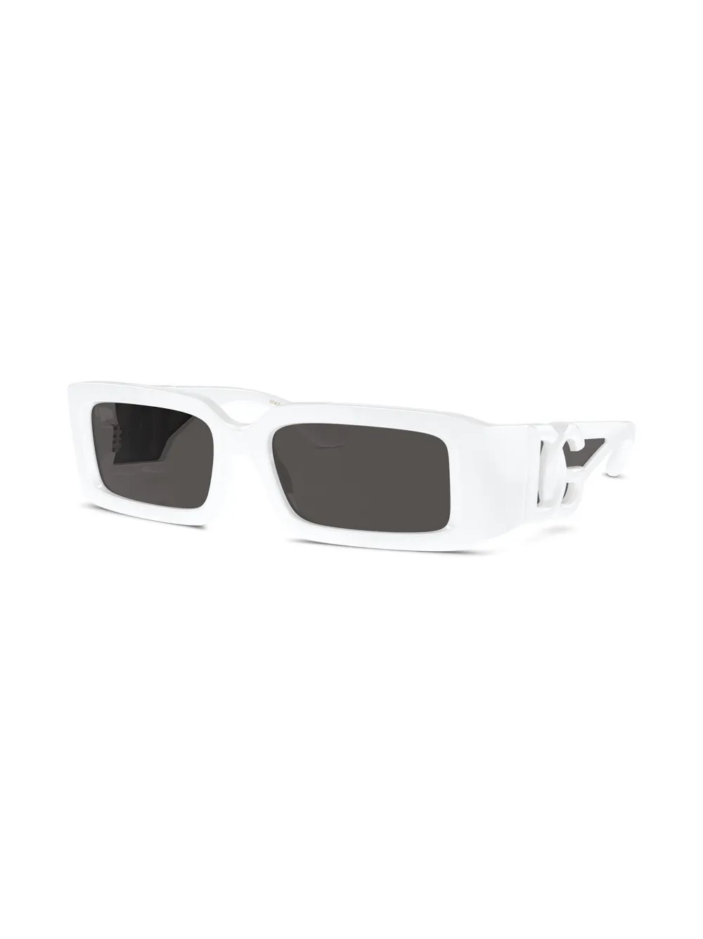 wit nylon rechthoekig montuur gekleurde glazen pootje met logo-reliëf rechte pootjes gebogen uiteinden Deze bril wordt verkocht met een beschermhoes.