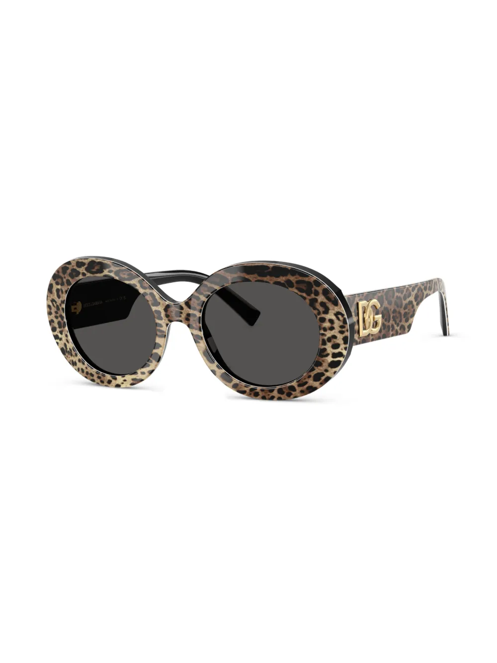 bruin acetaat luipaardprint rond montuur grijze glazen logoplakkaat op het pootje rechte pootjes gebogen uiteinden Deze bril wordt verkocht met een beschermhoes.