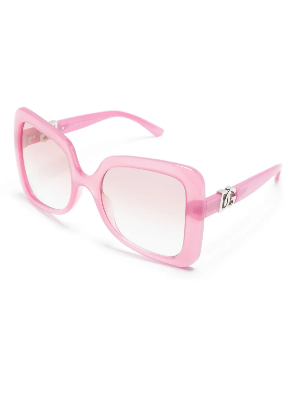 lichtroze acetaat oversized montuur glazen met kleurverloop zilverkleurig logoplakkaat rechte pootjes gebogen uiteinde Deze bril wordt verkocht met een beschermhoes.