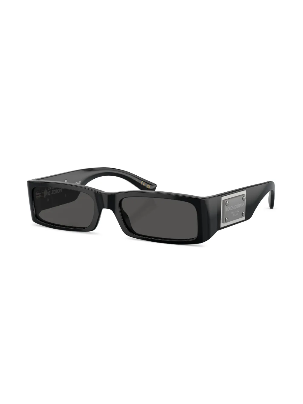Zwart, gekleurde glazen, rechthoekig montuur, logo plakkaat, geschulpte pootjes en gebogen uiteinde. Deze bril wordt verkocht met een beschermhoes..