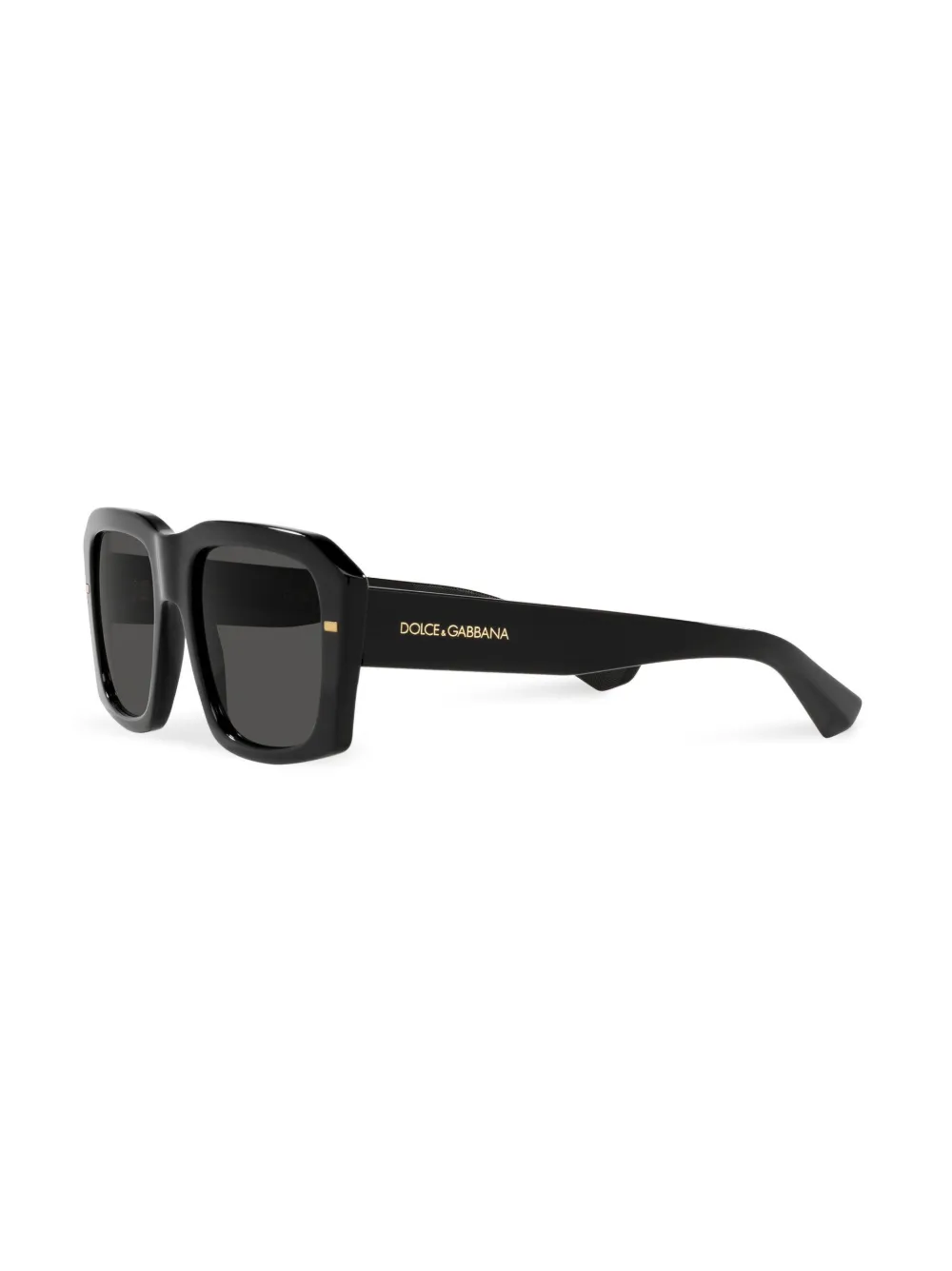 Zwart, acetaat, vierkant montuur, gekleurde glazen en logoplakkaat op het pootje. Deze bril wordt verkocht met een beschermhoes..