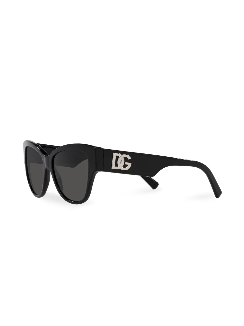 zwart acetaat zilverkleurig materiaal logo bedrukt pootje vlindermontuur grijze glazen glazen met UV-bescherming oversized pootjes gebogen uiteinden Deze bril wordt verkocht met een beschermhoes.