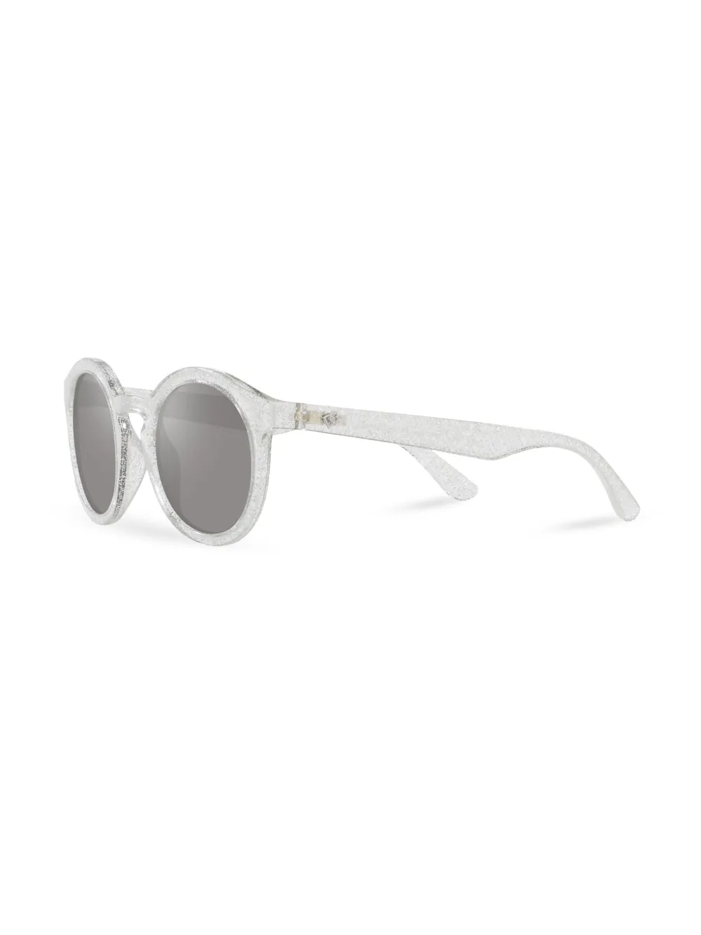 gebroken wit glitterdetail rond montuur gespiegelde glazen glazen met UV-bescherming logoplakkaat op het pootje rechte pootjes gebogen uiteinde Deze bril wordt verkocht met een beschermhoes.