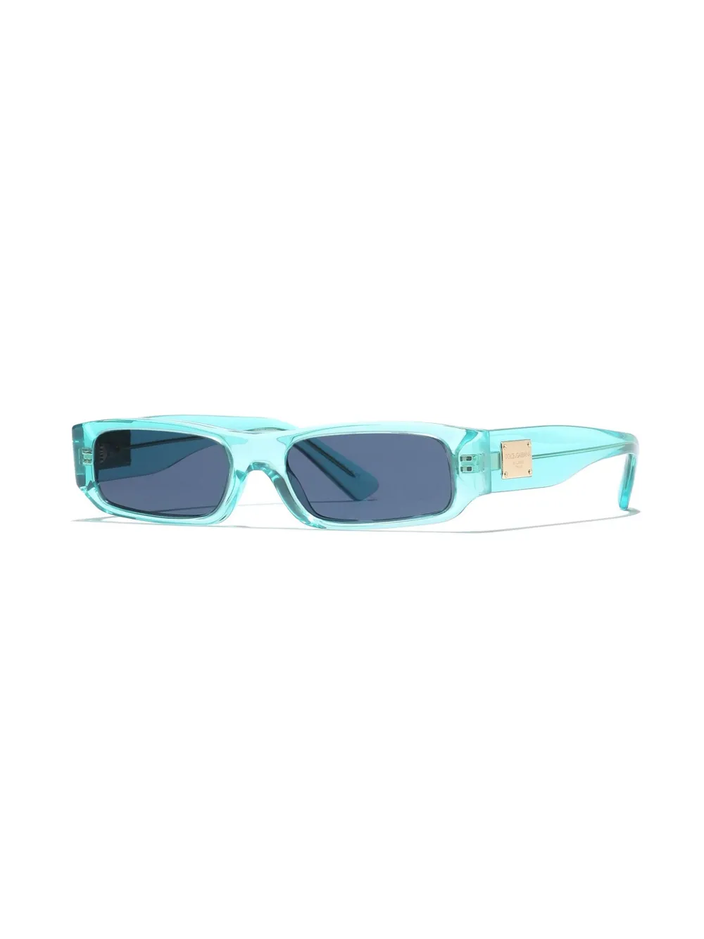aqua blauw acetaat vierkant montuur goudkleurig logo blauwe glazen gebogen uiteinde Deze bril wordt verkocht met een beschermhoes.