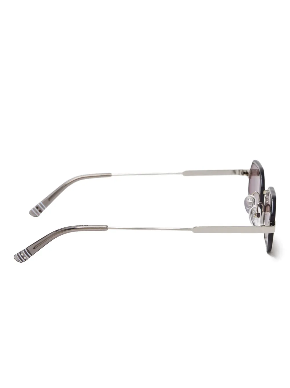 grijs geometrisch montuur zilverkleurige metalen pootjes donkergrijze glazen achthoekige glazen logodetail Deze bril wordt verkocht met een beschermhoes.