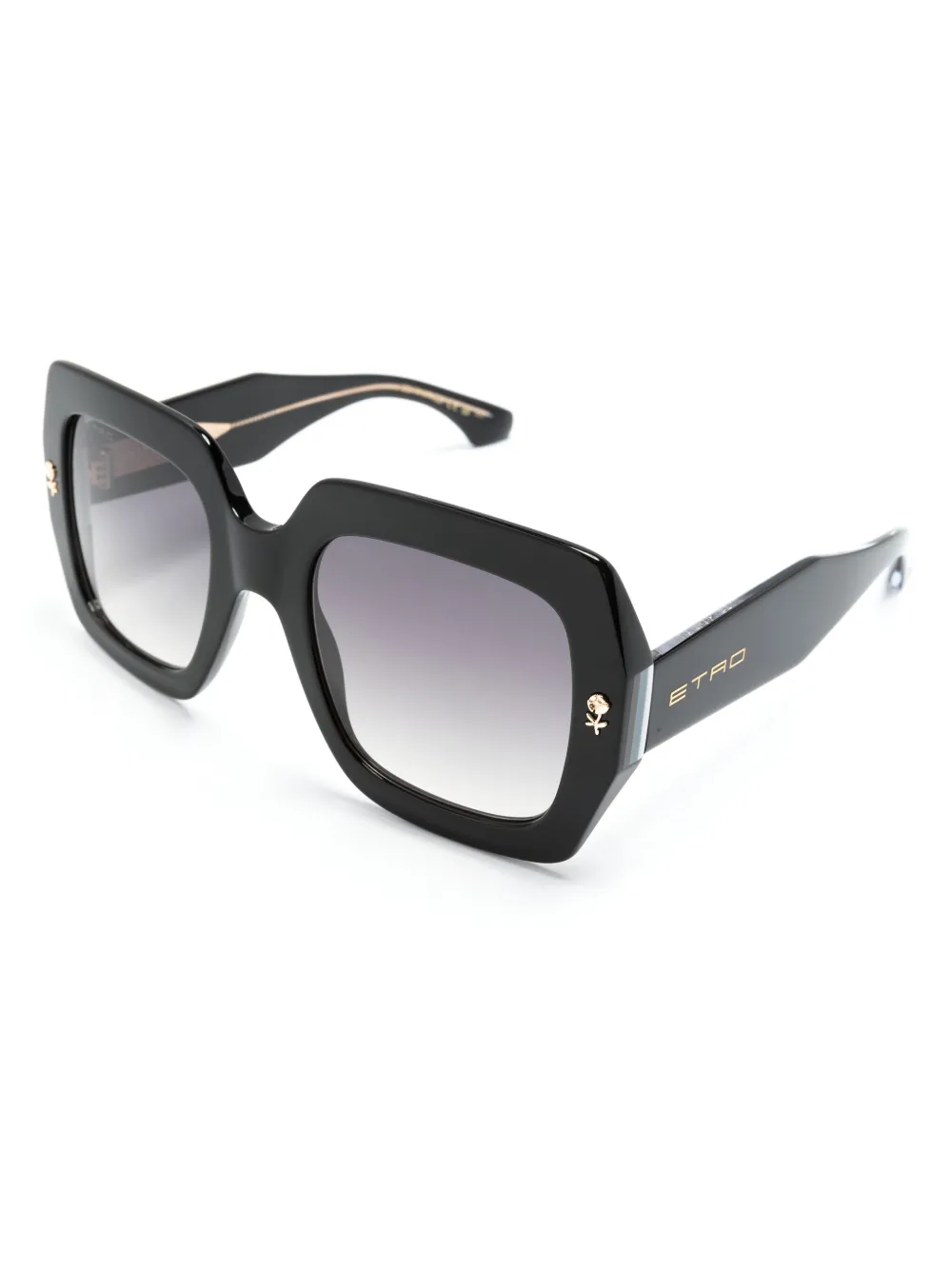 zwart acetaat oversized montuur gekleurde glazen pootje met gegraveerd logo bewerkte poten en gewelfde uiteinden Deze bril wordt verkocht met een beschermhoes.