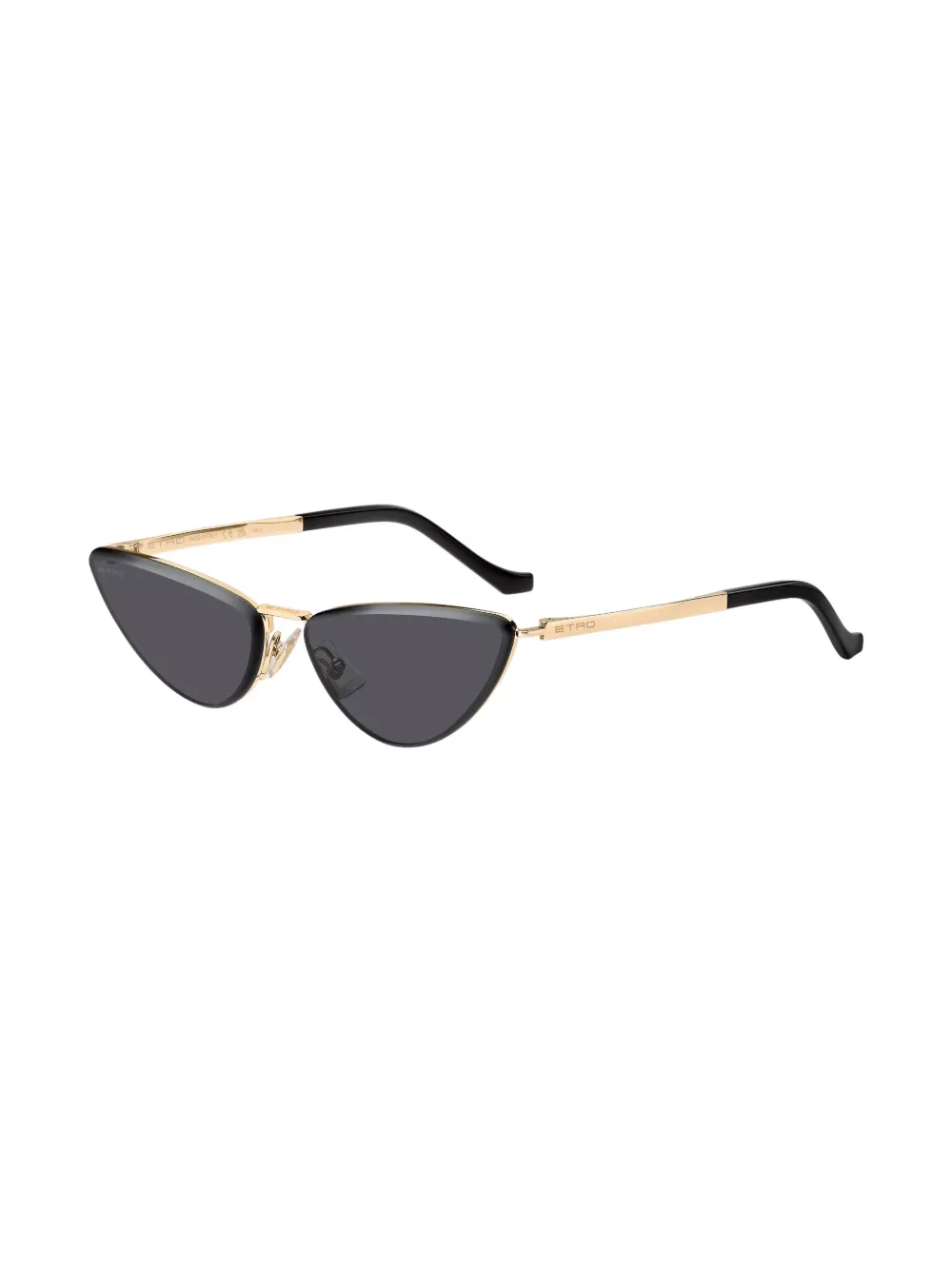 goudkleurig metaal cat-eye montuur grijze glazen neuskussentjes pootje met gegraveerd logo rechte pootjes gebogen uiteinden Deze bril wordt verkocht met een beschermhoes.